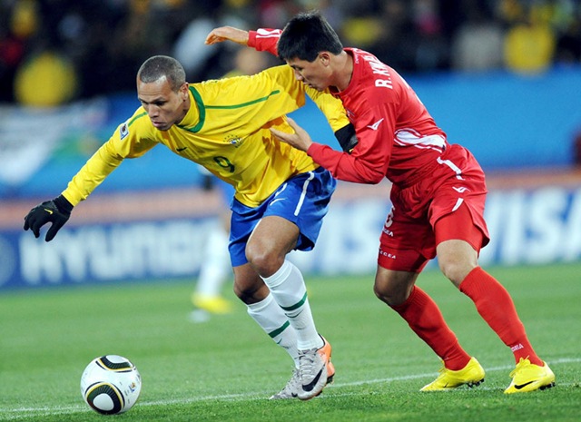 Ni las bicicletas de Robinho por la izquierda ni las arrancadas de Maicon por la derecha rompieron la disciplina defensiva norcoreana en la primera parte. Pero en el minuto 55, Maicon penetró casi hasta la línea de fondo y cuando el meta Myong Guk se alejó del marco para tapar el previsible centro, soltó un derechazo que fue directo adentro. Elano, en el 72, remachó un pase en diagonal de Robinho con un disparo raso y cruzado para aumentar la cuenta, pero en el 89 Yun Nam Ji se metió hasta el área chica y marcó el gol del orgullo.