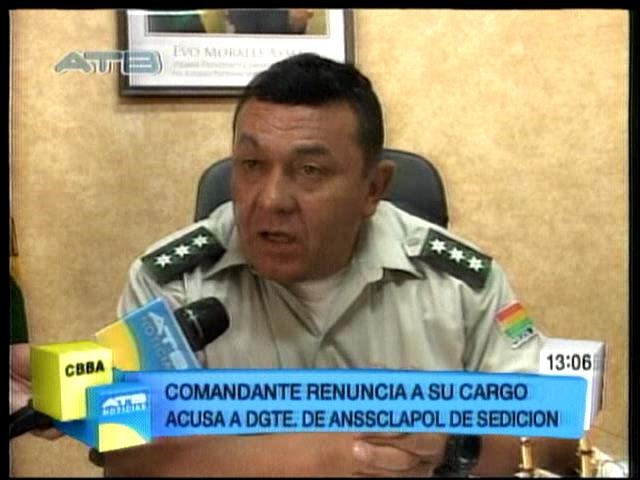 Cochabamba.- El Comandante de la Policía en Cochabamba Cnl. Erwin Montaño manifestó que pone su cargo a disposición después que manifestaron los Policías de la ASSCLAPOL.