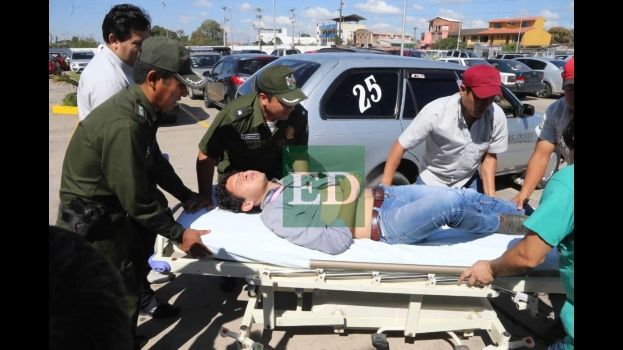 El policia herido se llama Fernando Contreras, 34 años, de la Felcc. Se encontraba haciendo un patrullaje por el centro. Tiene dos hijos. Recibió un disparo en la espalda. Se encuentra estable.