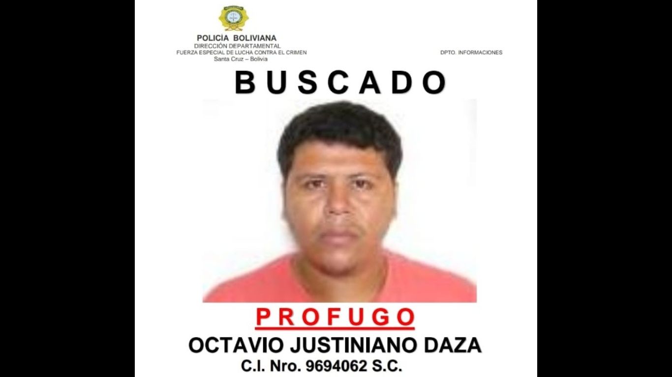 La Policía divulgó la imagen de Octavio Justiniano Daza, alias ‘Piquín’, de 23 años, tez morena, 1,70 m de estatura y 85 kg de peso. El sujeto es buscado por el crimen de Alex Peña Toro (24), un joven universitario que fue a pasar el Carnaval a su natal San Matías.