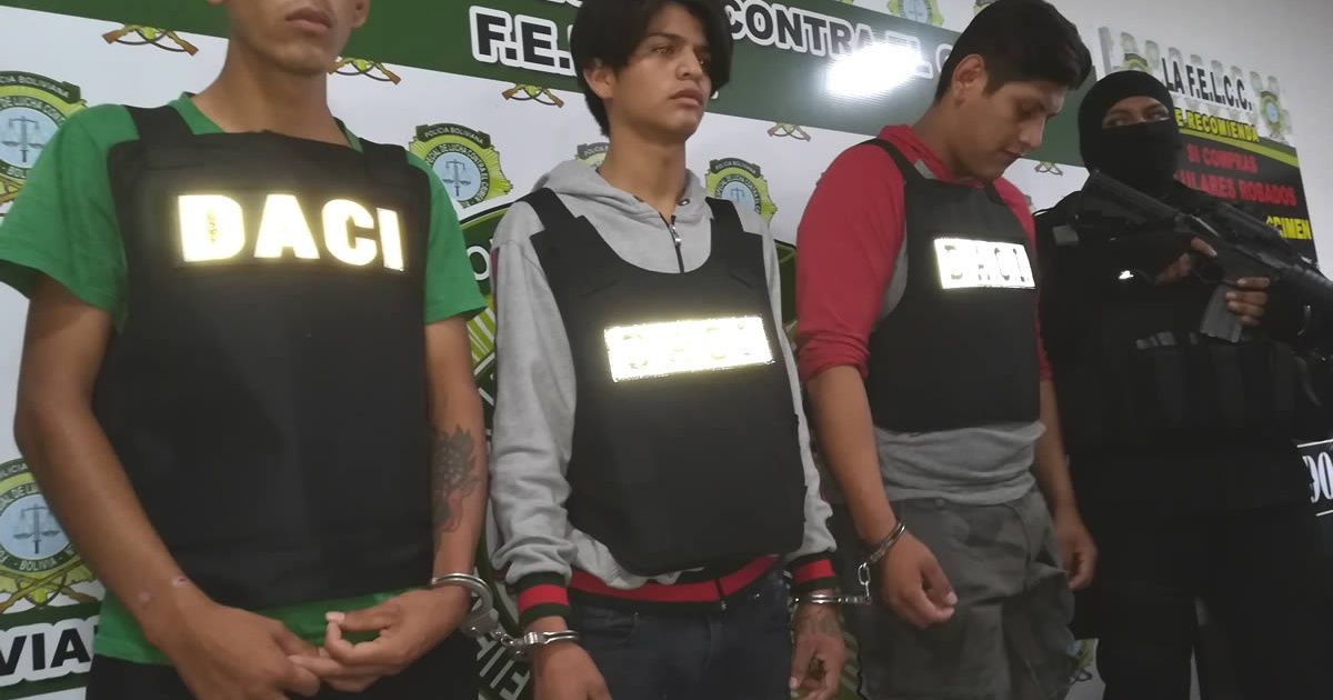 Kevin Carmona Panoso, Josué Flores Roca y Carlitos Coronado Galarza fueron capturados por la Felcc en Satélite Norte, desde donde venían a la capital cruceña a perpetrar robos agravados de celulares a transeúntes, según la Policía.