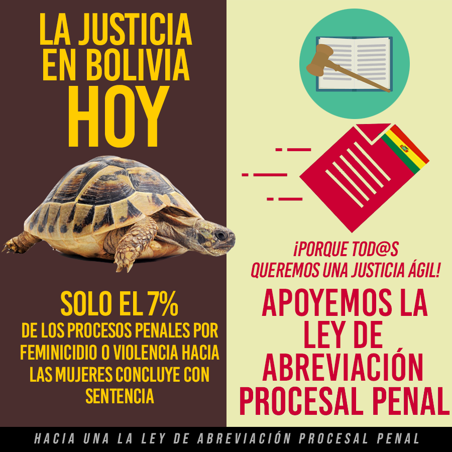 ¿Sabías que en #Bolivia sólo el 7% de los procesos penales por feminicidio o violencia hacia las mujeres concluye con una sentencia? Por una justicia ágil para tod@s. ¡Apoyemos la Ley de Abreviación Procesal Penal! https://t.co/aqNOfhFZQK