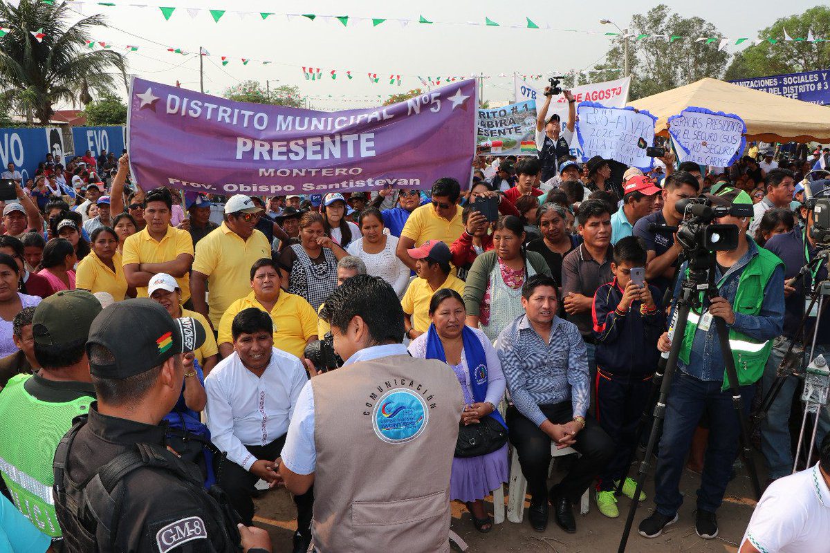 ¡Continuamos con la entrega de obras para nuestra #SantaCruz!Estuvimos en #Montero junto al presidente @evoespueblo entregando la firma de 20 proyectos mediante el programa #MiBarrioMiHogar. Incluye el enlosetado de 110.000 m2 para beneficiar a 34.953 habitantes, entre otros. https://t.co/xBxYHQkc6A