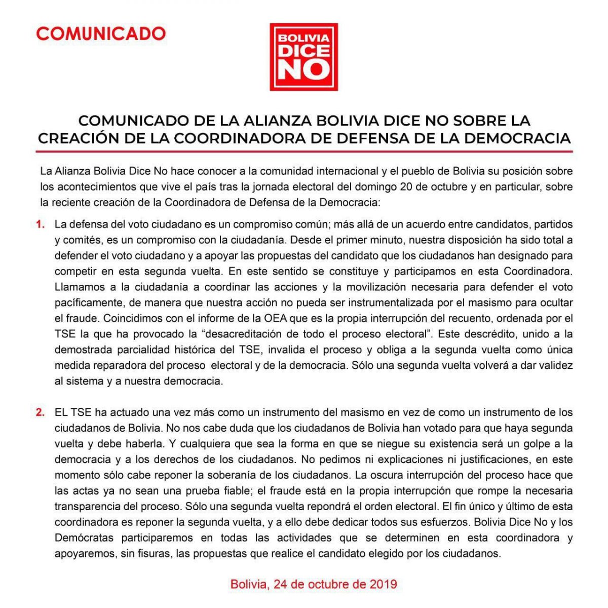 En camino a La Paz, donde todos los líderes políticos y cívicos del país rubricaremos hoy el nacimiento de la Coordinadora de Defensa de la Democracia, para evitar el fraude y hacer respetar el voto de los bolivianos.