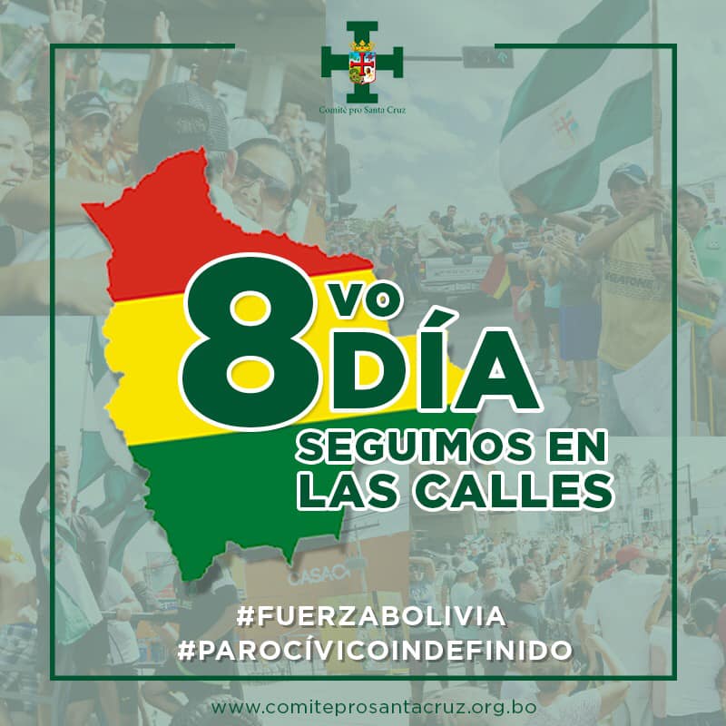 Nos vemos hoy, a las 19:00 hrs a los pies de nuestro Cristo Redentor, ahora empieza una nueva etapa, se darán a conocer algunas recomendaciones para que nuestro paro tenga más firmeza!Recordemos… Santa Cruz es la esperanza de Bolivia… Santa Cruz ya no tiene dueño!