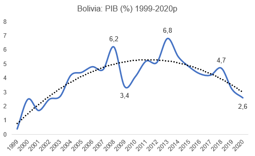 Con todos los nuevos descubrimientos sobre las millonarias pérdidas en las principales empresas públicas que el Movimiento al Socialismo ha dejado detrás, las cifras de deuda pública y déficit tendrían que, definitivamente, ser considerablemente más elevadas que las que aún se reporta oficialmente, entonces ¿es necesario esperar a que la economía de Bolivia entre en recesión para afirmar que está en crisis? Es más, ¿Bolivia crecerá al 2,6% del PIB en 2020 o seguirá cayendo? De hecho hoy ya crece menos que cuando recibió el golpe de la caída de Lehman de 2008.