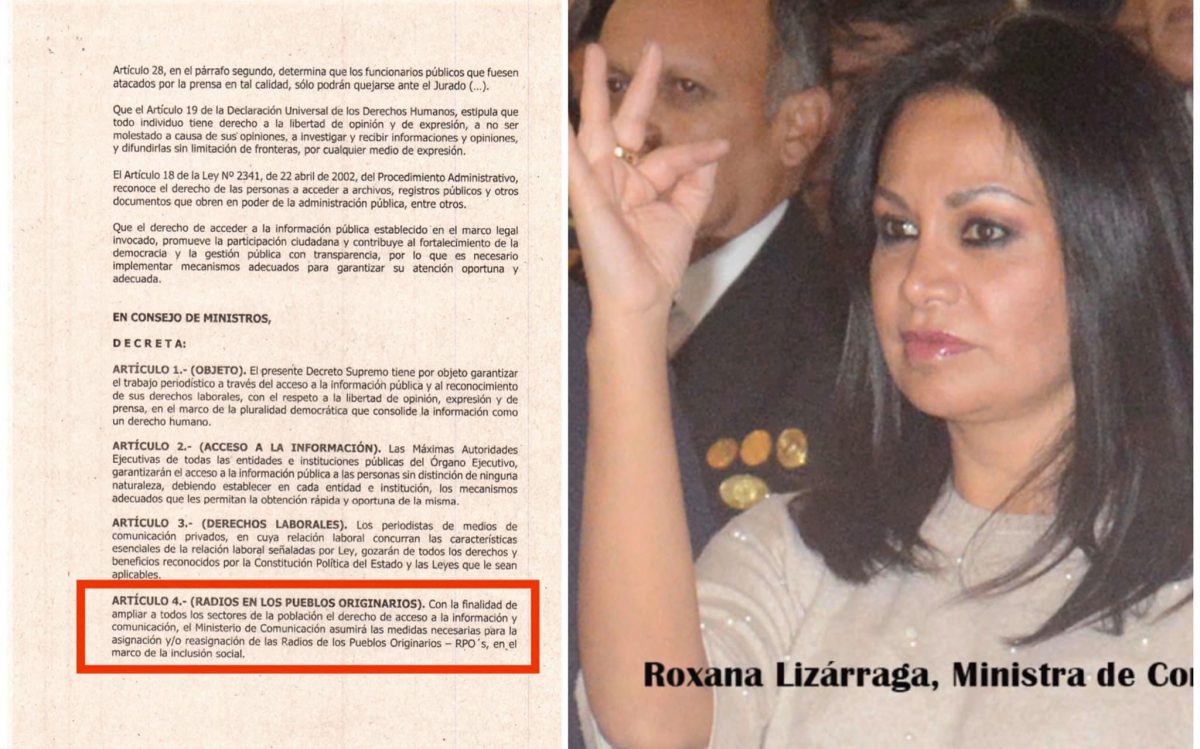 La Paz.- La ministra de Comunicación, Roxana Lizárraga, trabaja un proyecto de Decreto Supremo que ya fue presentado al gabinete de ministros donde se plantea reasignar las frecuencias de las radios originarias entregadas a los sectores sociales durante los últimos 10 años.