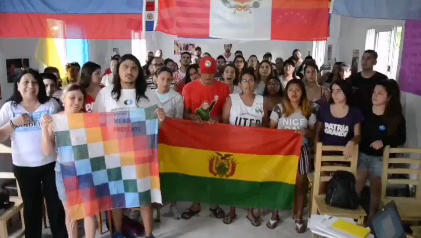 Agradezco a todos los estudiantes reunidos en el curso de Historia Latinoamericana de la Escuela Nacional José Carlos Mariátegui, de #Argentina que al grito de ¡#Bolivia somos todos! manifestaron su apoyo a nuestro pueblo y a nuestros candidatos #LuchoYDavid#EvoNoEstásSolo✊? https://t.co/vvbr0zW8th