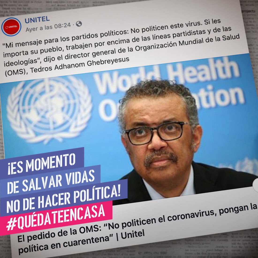 Lo dijimos al inicio de esta crisis y lo mantendremos hasta el final. ¡Es tiempo de salvar vidas! La política debe quedar en segundo plano para abocarnos a trabajar unidos por la salud de nuestra gente. ¡Que se contagie la fe y la solidaridad en todo el país! #QuédateEnCasa https://t.co/3zaKrhQrlL