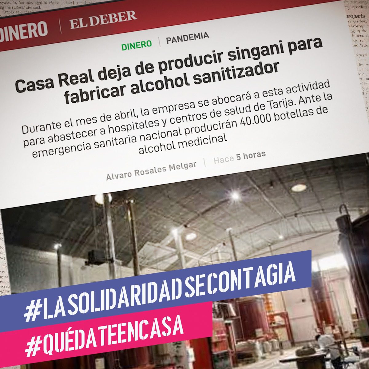 Una marca emblemática de Singani Tarijeño se une a la lucha contra el coronavirus. ¡Celebremos que la solidaridad se está contagiando por todo el país! #LaSolidaridadSeContagia #QuédateEnCasa https://t.co/R3mSAZOjcq