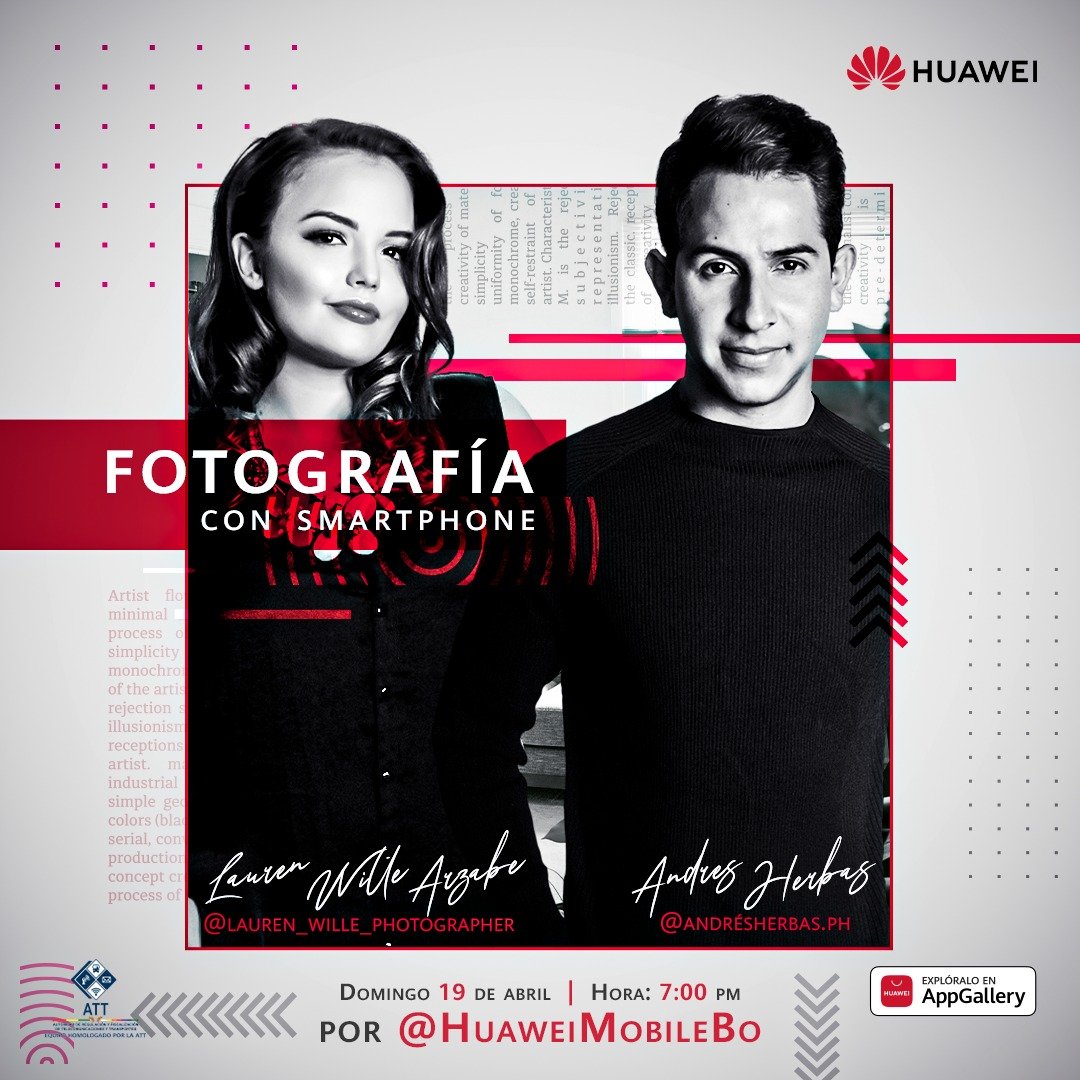 Con el fin de compartir sus conocimientos y experiencias, los reconocidos fotógrafos profesionales este domingo 19 de abril a las 19hrs, Lauren Wille y Andrés Herbas brindarán el workshop “Fotografía con Smartphone” a través de un live en el Instagram de Huawei Bolivia (@Huaweimobilebo)