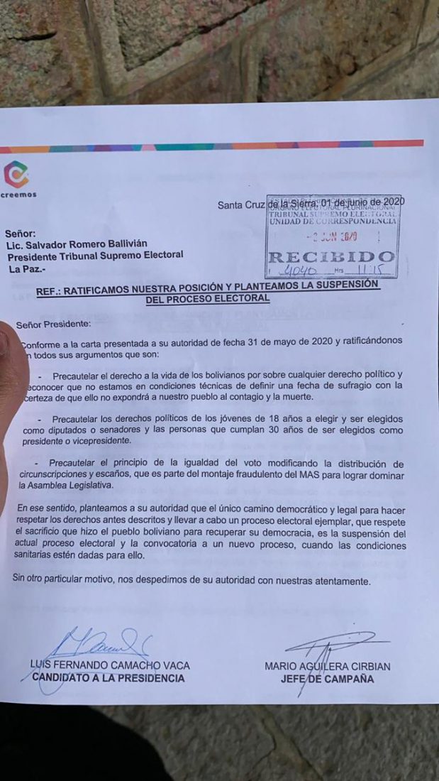 30 compatriotas muertos ayer y el @TSEBolivia y los viejos partidos hablando de elecciones. Posición de CREEMOS: luchar por la vida y salud de la gente, elecciones cuando realmente se controle la pandemia y se desmonte la maquinaria con la que el MAS nos hizo fraude. https://t.co/cYJpwiQWNF