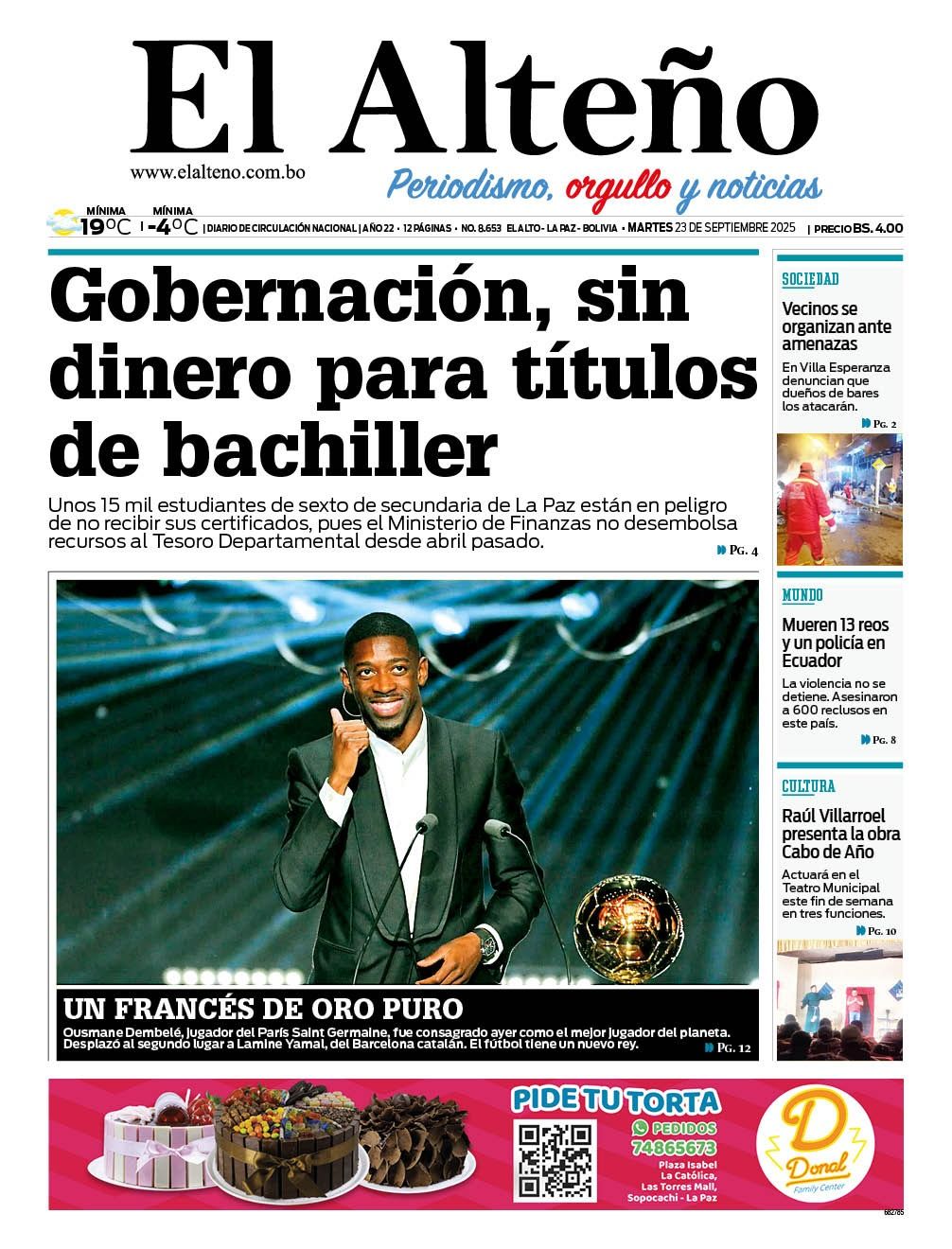 Fuente: El Deber, El Día, Zona Norte, La Palabra, La Razón, El Alteño, La Prensa, Ahora El Pueblo, La Estrella del Oriente, El Mundo, Los Tiempos, El Potosí, Correo del Sur, El País, El Periódico, El Diario, Opinión.