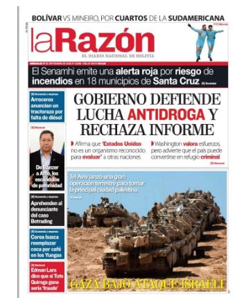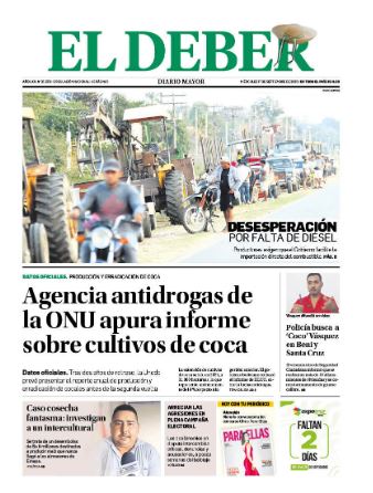 Fuente: El Deber, El Día, Zona Norte, La Palabra, La Razón, El Alteño, La Prensa, Ahora El Pueblo, La Estrella del Oriente, El Mundo, Los Tiempos, La Voz, Contraparte, Andaluz, El Potosí, Correo del Sur, El País, El Periódico, El Diario, Amitel Pres, Opinión, Caja Negra.