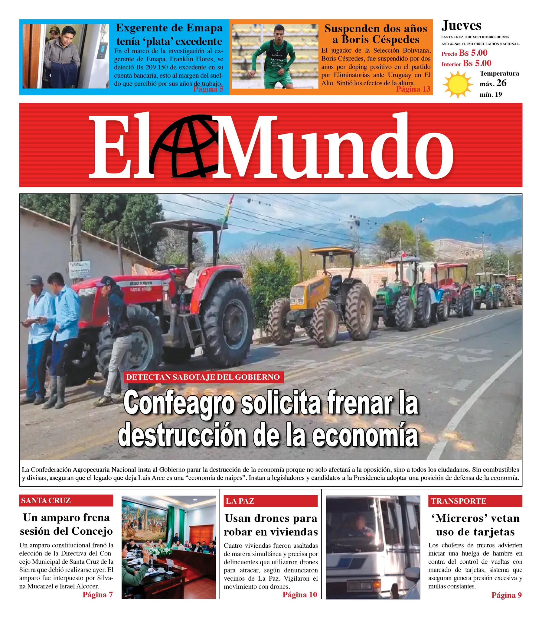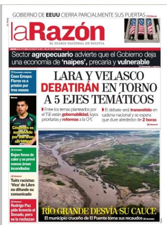 Fuente: El Deber, El Día, Zona Norte, La Palabra, La Razón, El Alteño, La Prensa, Ahora El Pueblo, La Estrella del Oriente, El Mundo, Los Tiempos, La Voz, Contraparte, Andaluz, El Potosí, Correo del Sur, El País, El Periódico, El Diario, Amitel Pres, Opinión, Caja Negra, Novavox.