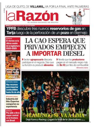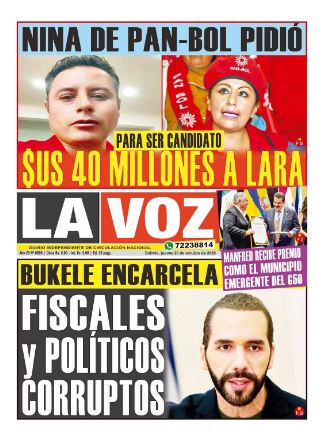Fuente: El Deber, El Día, Zona Norte, La Palabra, La Razón, El Alteño, La Prensa, Ahora El Pueblo, La Estrella del Oriente, El Mundo, Los Tiempos, La Voz, Contraparte, Andaluz, El Potosí, Correo del Sur, El País, El Periódico, El Diario, Amitel Pres, Opinión, Caja Negra, Novavox.