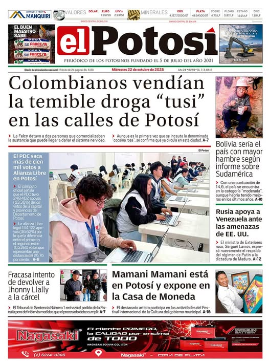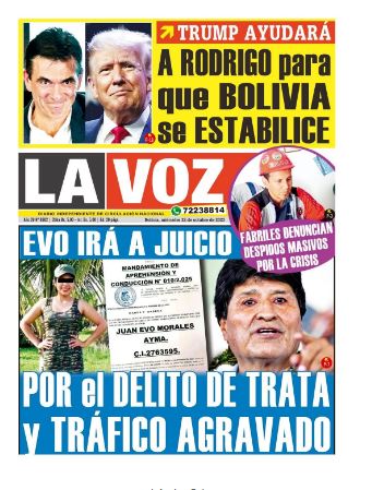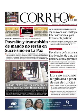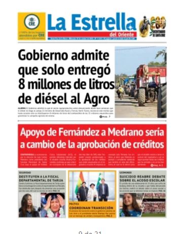 Fuente: El Deber, El Día, Zona Norte, La Palabra, La Razón, El Alteño, La Prensa, Ahora El Pueblo, La Estrella del Oriente, El Mundo, Los Tiempos, La Voz, Contraparte, Andaluz, El Potosí, Correo del Sur, El País, El Periódico, El Diario, Amitel Pres, Opinión, Caja Negra, Novavox.