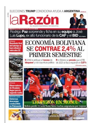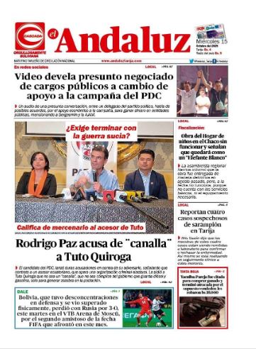 Fuente: El Deber, El Día, Zona Norte, La Palabra, La Razón, La Prensa, Ahora El Pueblo, La Estrella del Oriente, El Mundo, Los Tiempos, La Voz, Contraparte, Andaluz, Correo del Sur, El País, El Periódico, El Diario, Amitel Pres, Opinión, Caja Negra, Novavox.