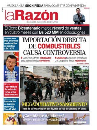 Fuente: El Deber, El Día, Zona Norte, La Palabra, La Razón, El Alteño, La Prensa, Ahora El Pueblo, La Estrella del Oriente, El Mundo, Los Tiempos, La Voz, Contraparte, Andaluz, El Potosí, Correo del Sur, El País, El Periódico, El Diario, Amitel Pres, Opinión, Caja Negra, Novavox.