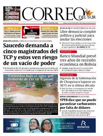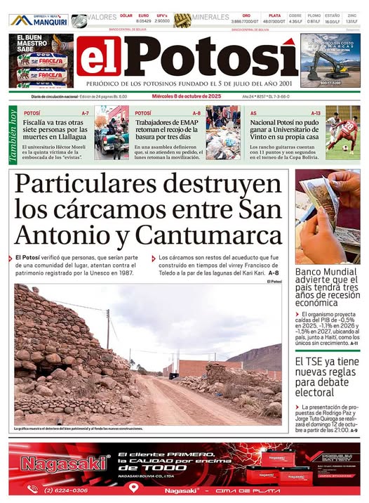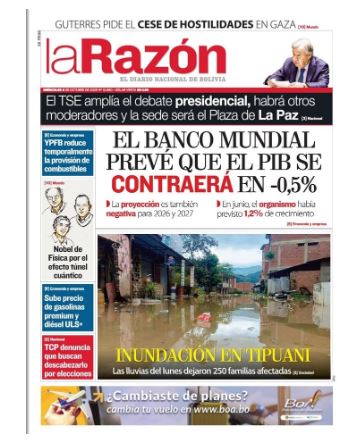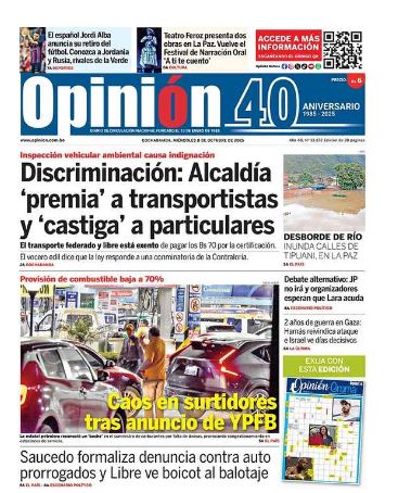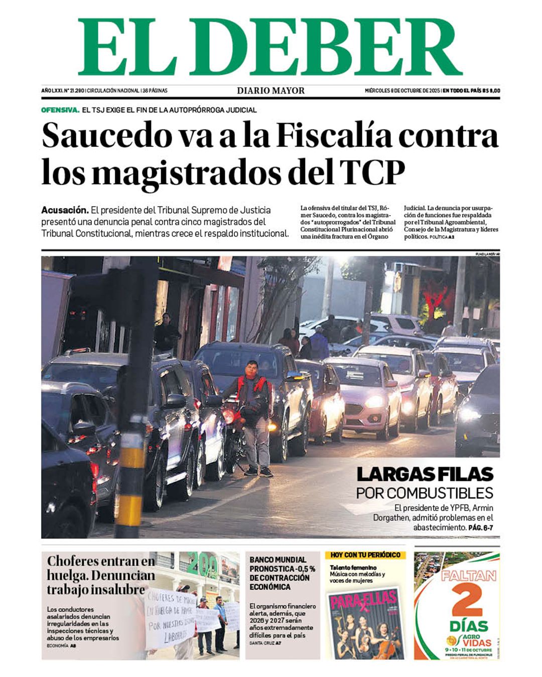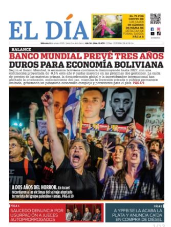 Portadas de los periódicos de Bolivia del miércoles 8 de octubre del 2025