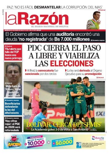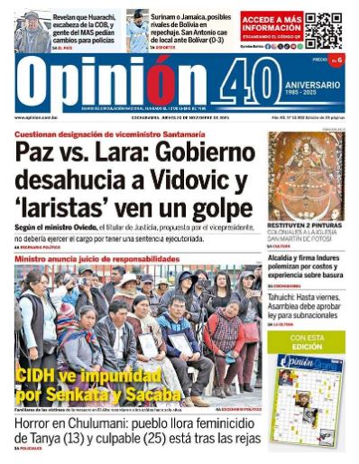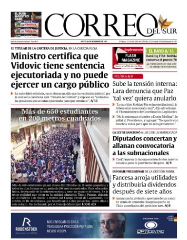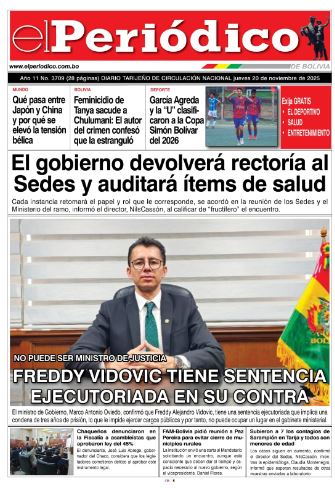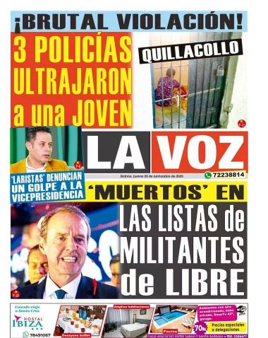 Fuente: El Deber, El Día, Zona Norte, La Palabra, La Razón, El Alteño, La Prensa, Ahora El Pueblo, La Estrella del Oriente, El Mundo, Los Tiempos, La Voz, Contraparte, Andaluz, El Potosí, Correo del Sur, El País, El Periódico, El Diario, Amitel Pres, Opinión, Caja Negra, Novavox.