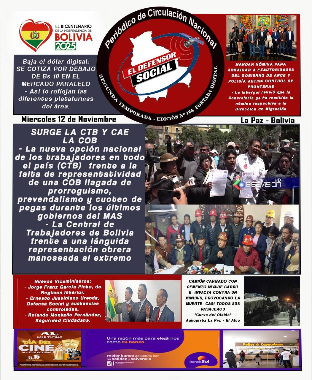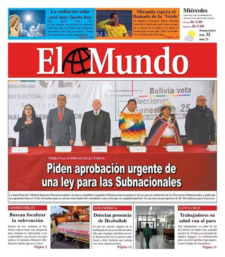 Fuente: El Deber, El Día, Zona Norte, La Palabra, La Razón, El Alteño, La Prensa, Ahora El Pueblo, La Estrella del Oriente, El Mundo, Los Tiempos, La Voz, Contraparte, Andaluz, El Potosí, Correo del Sur, El País, El Periódico, El Diario, Amitel Pres, Opinión, Caja Negra, Novavox.