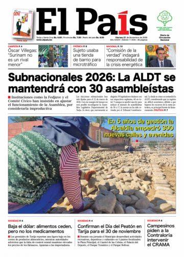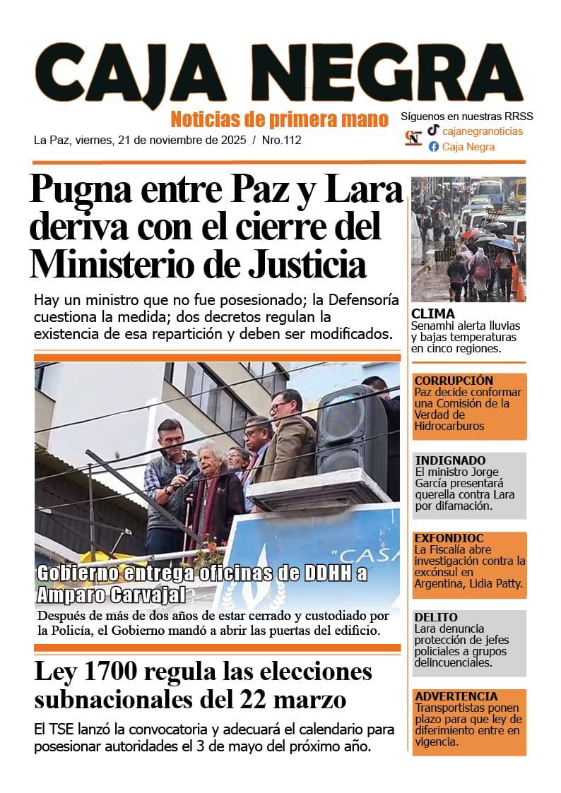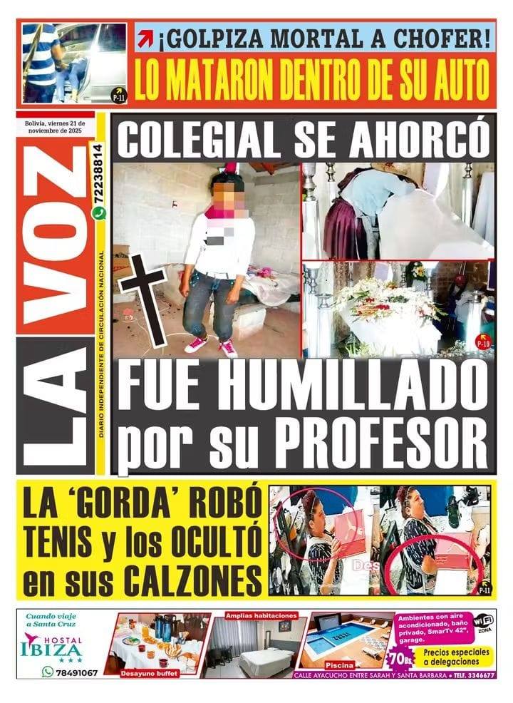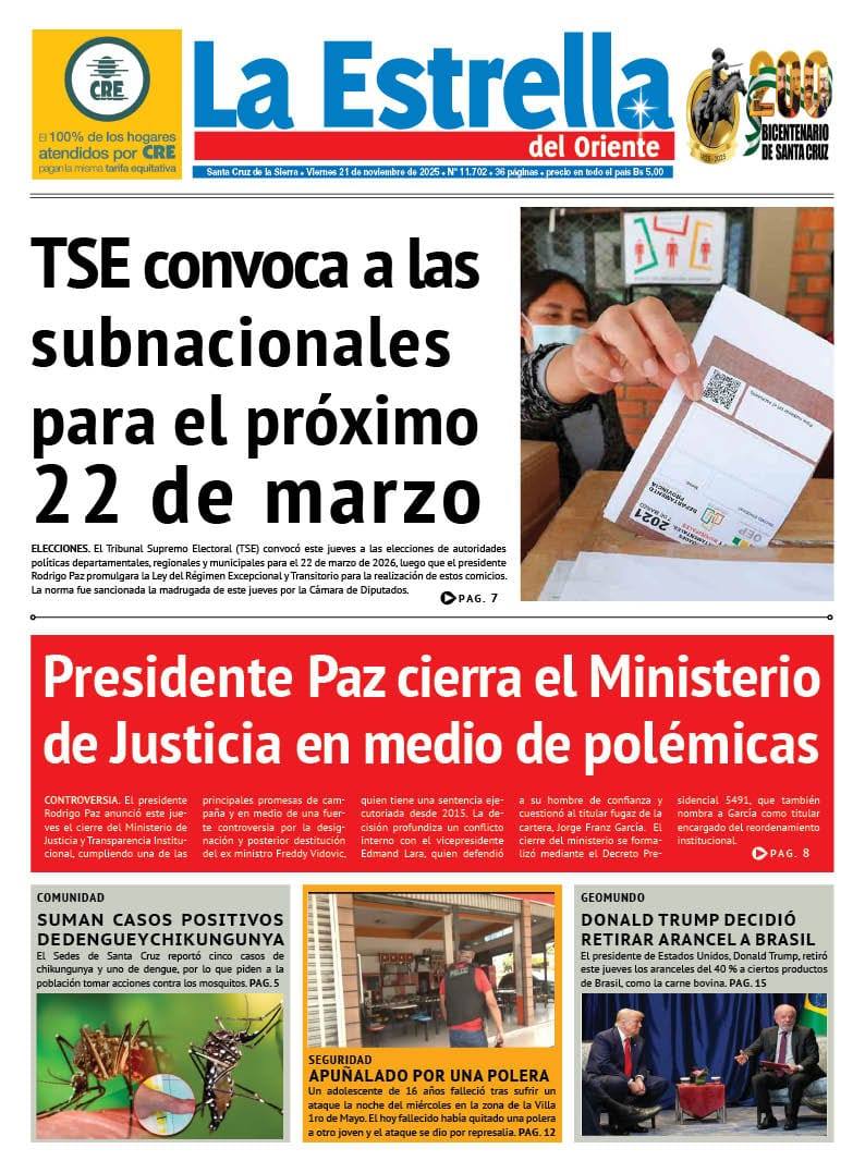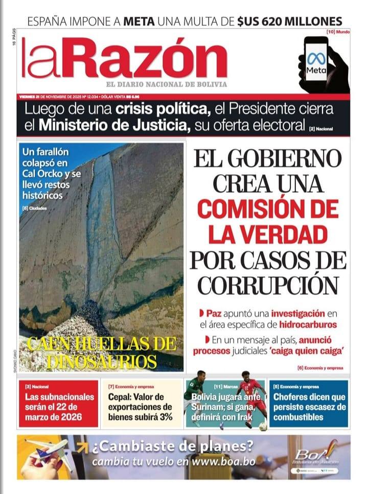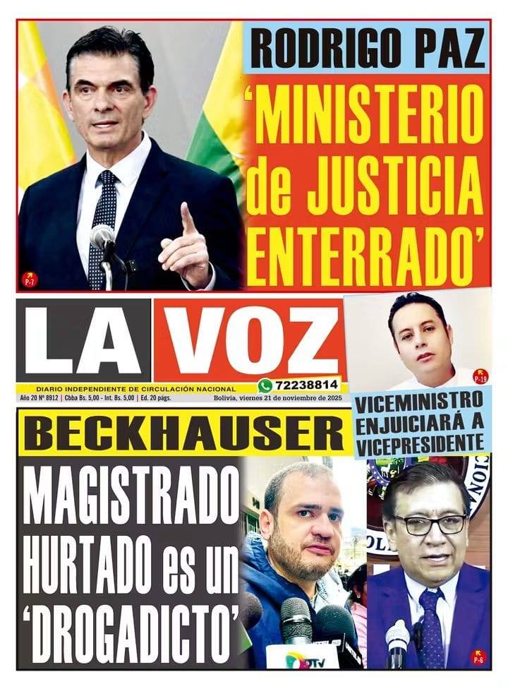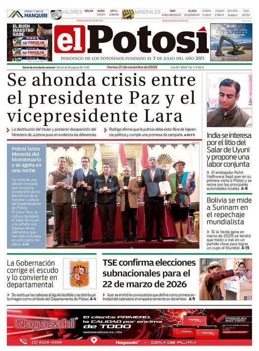Portadas de los periódicos de Bolivia del viernes 21 de noviembre del 2025