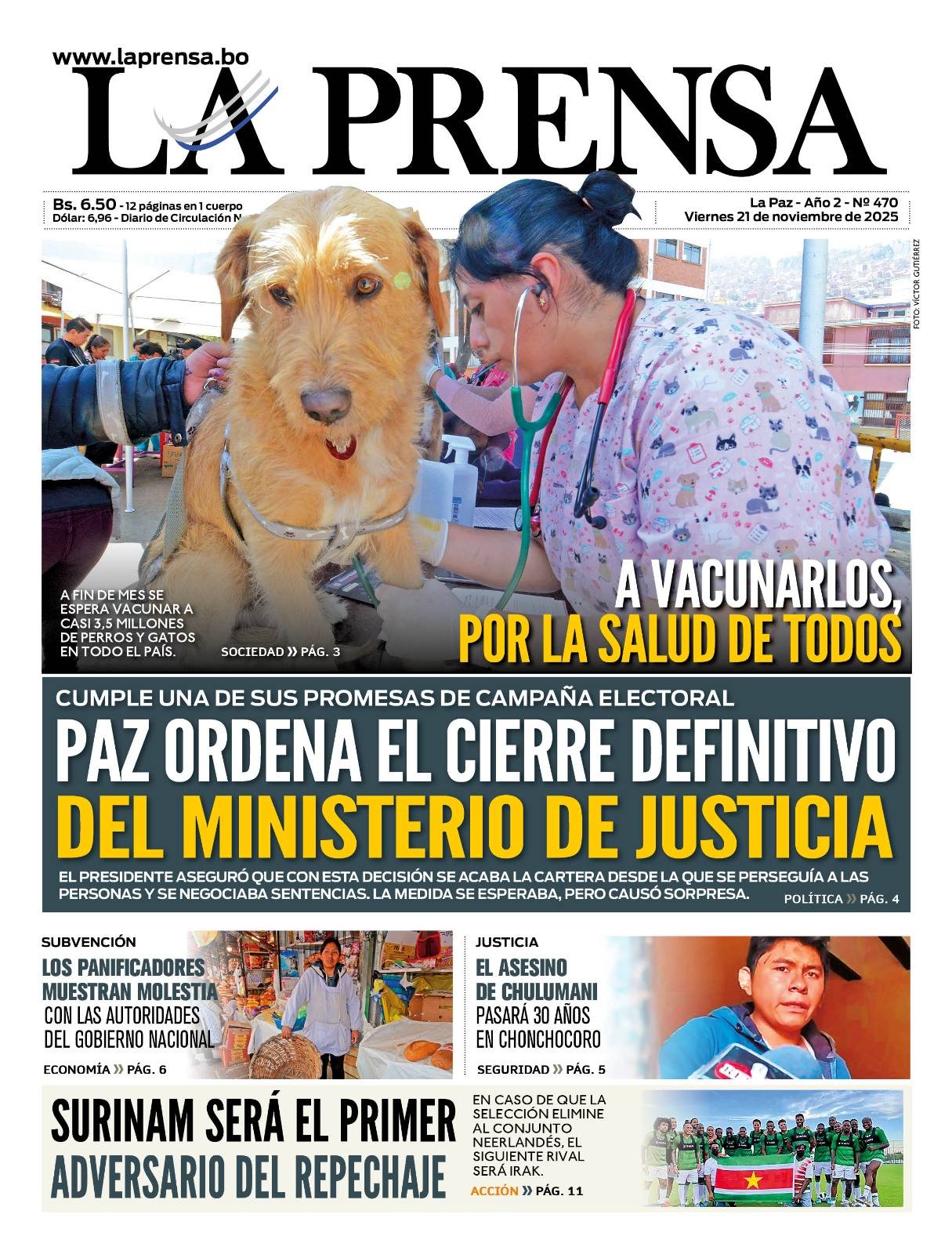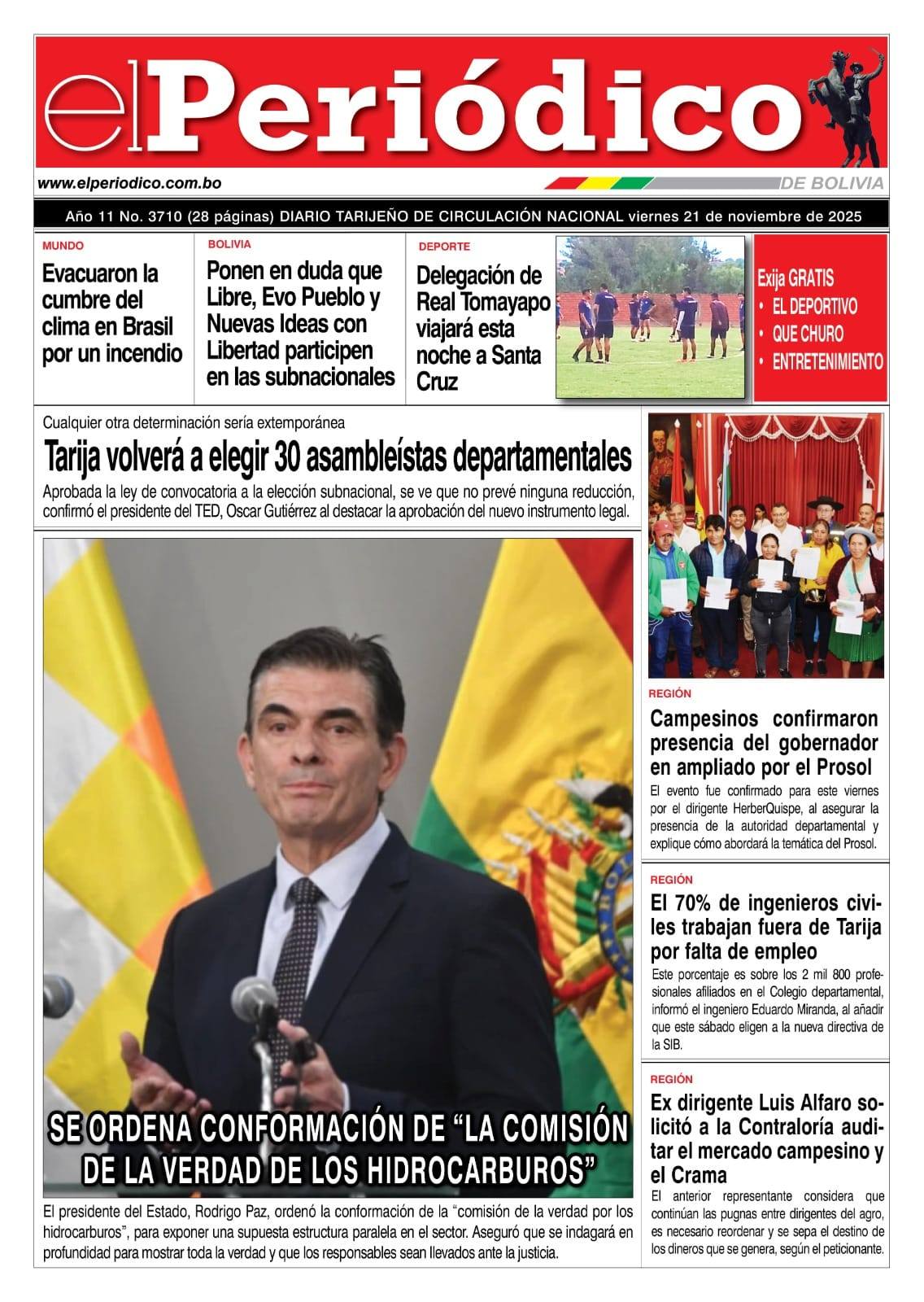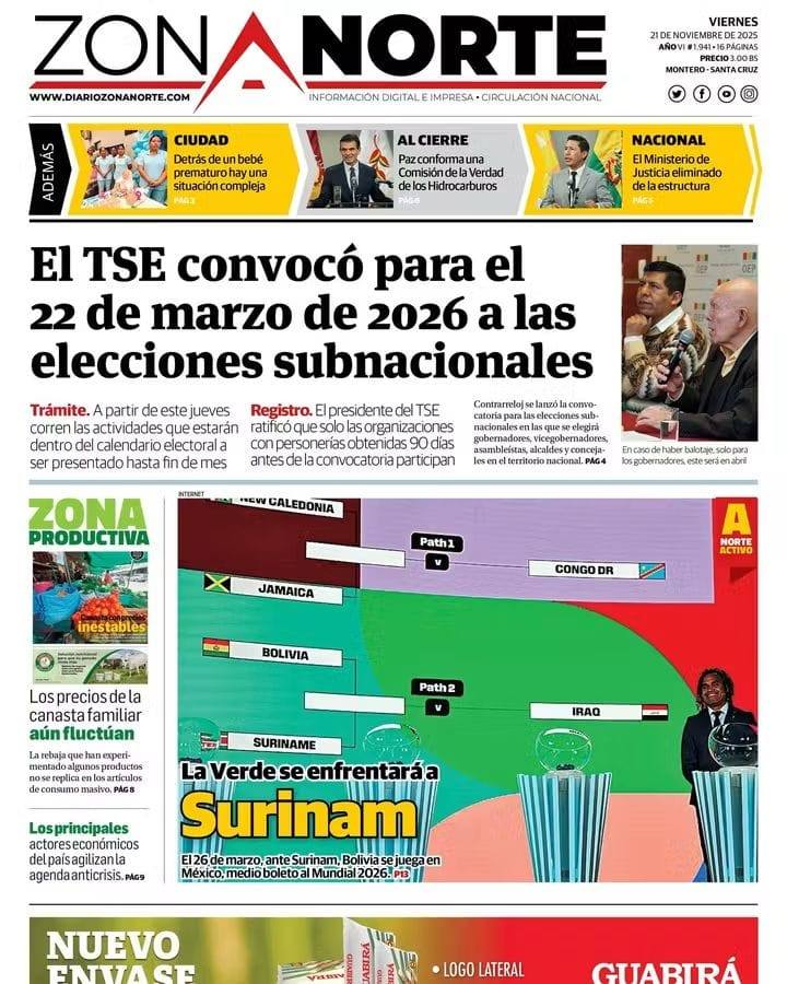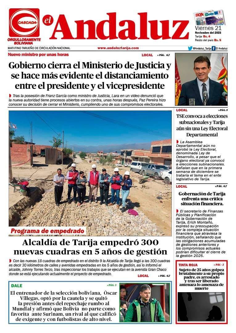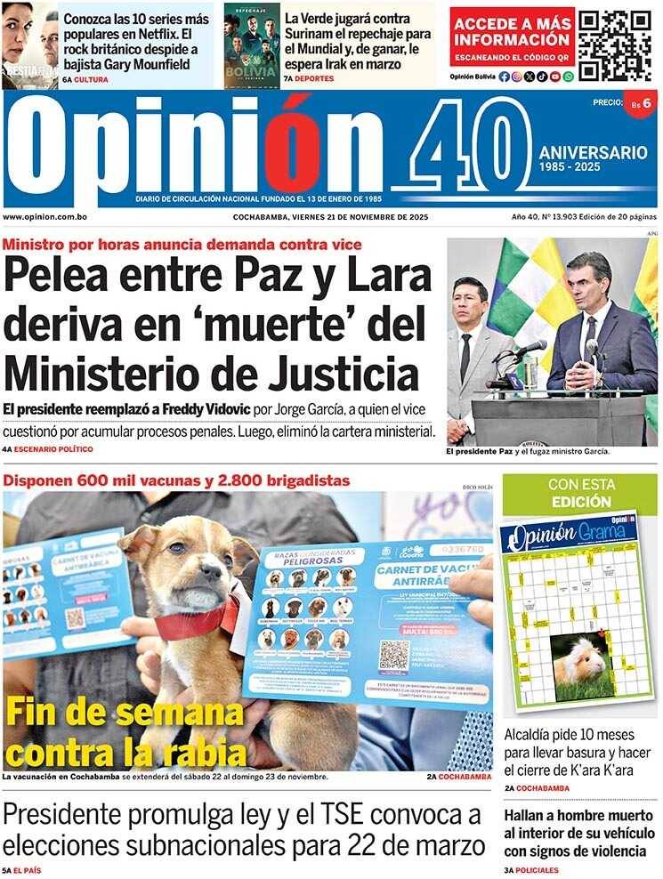 Portadas de los periódicos de Bolivia del viernes 21 de noviembre del 2025