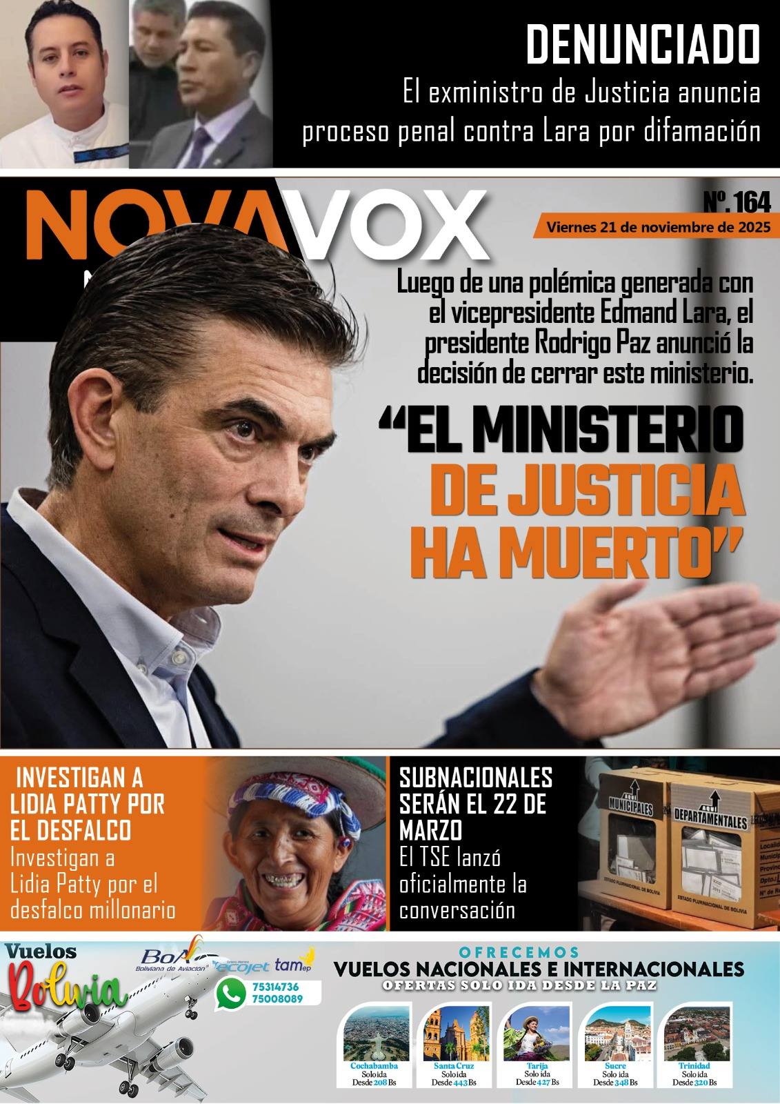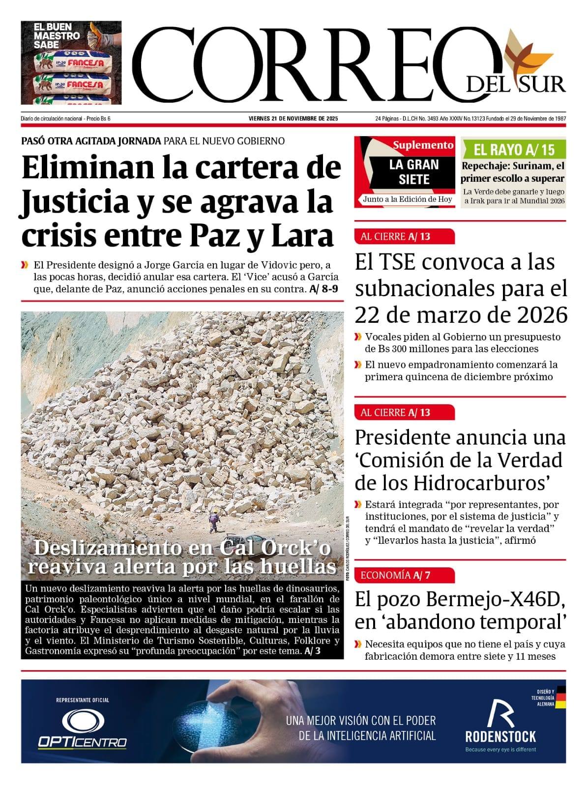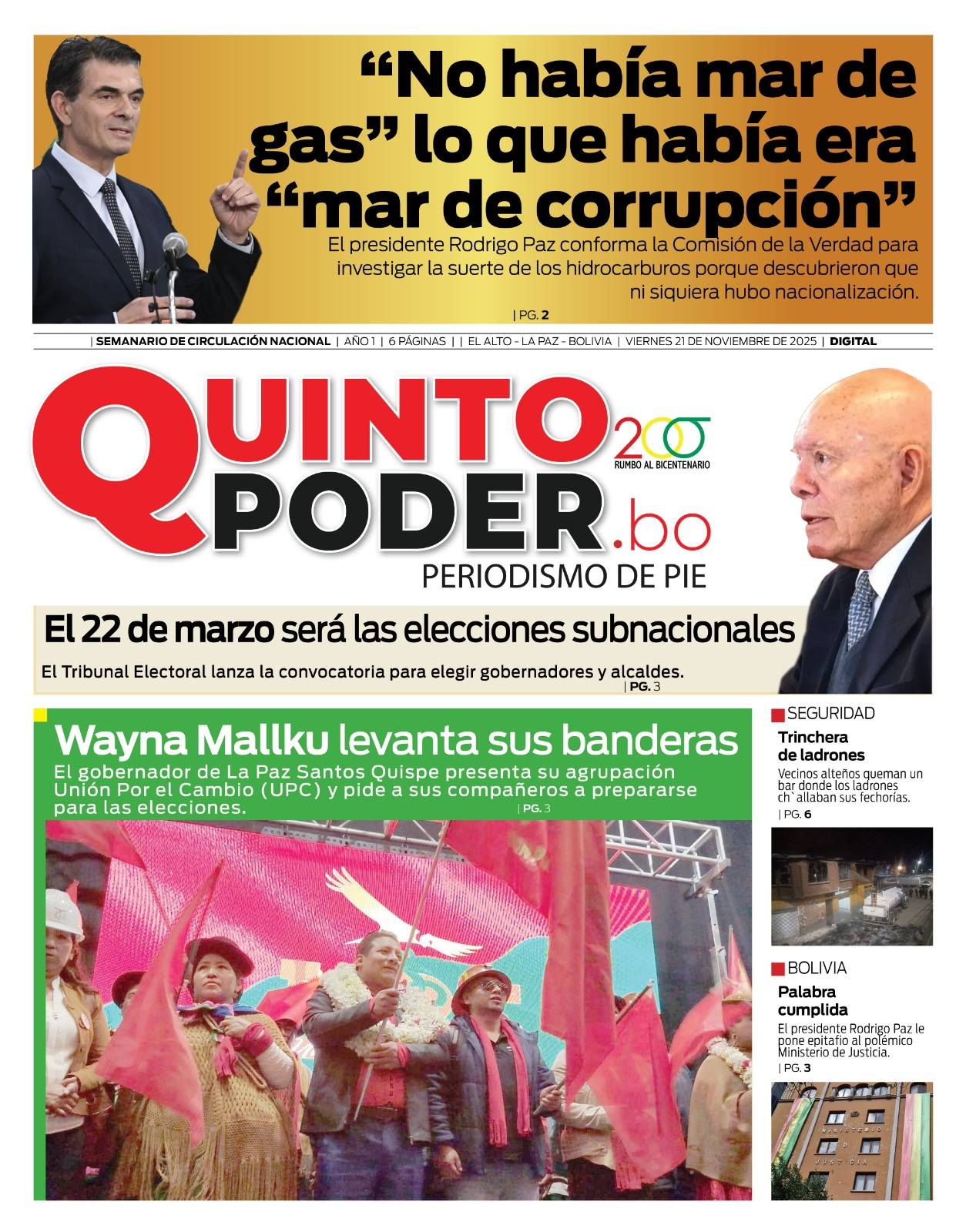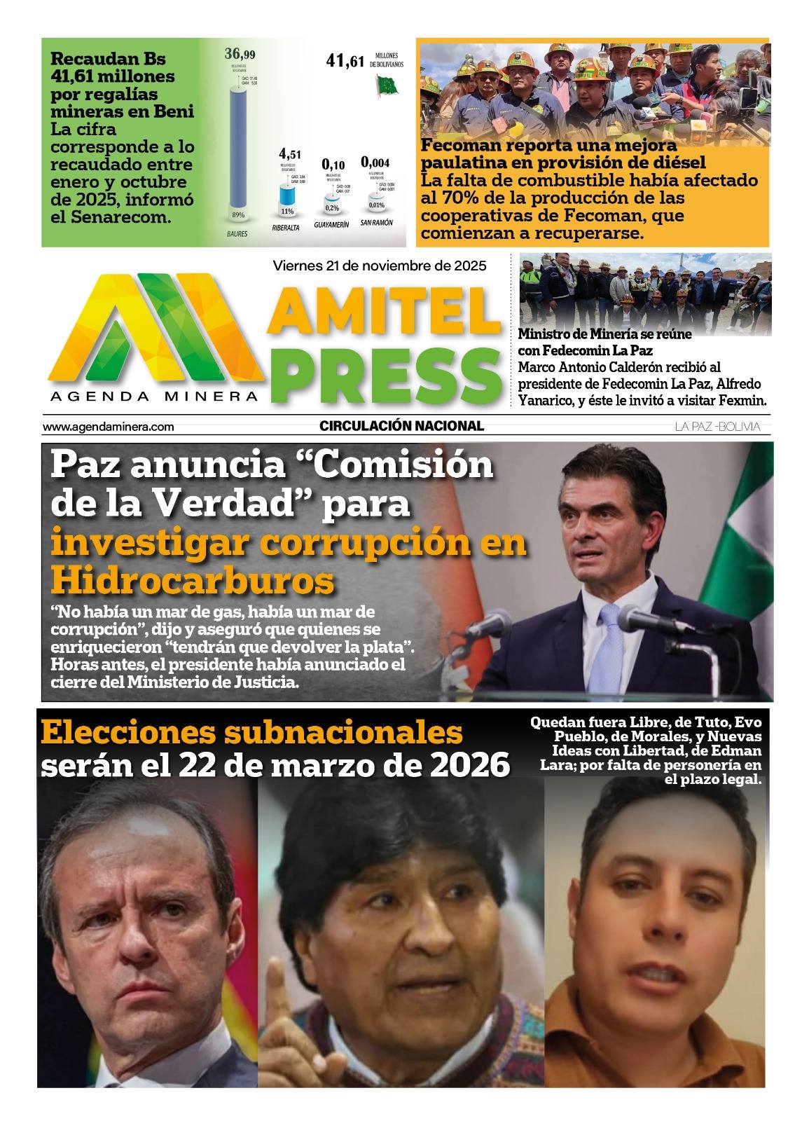 Portadas de los periódicos de Bolivia del viernes 21 de noviembre del 2025
