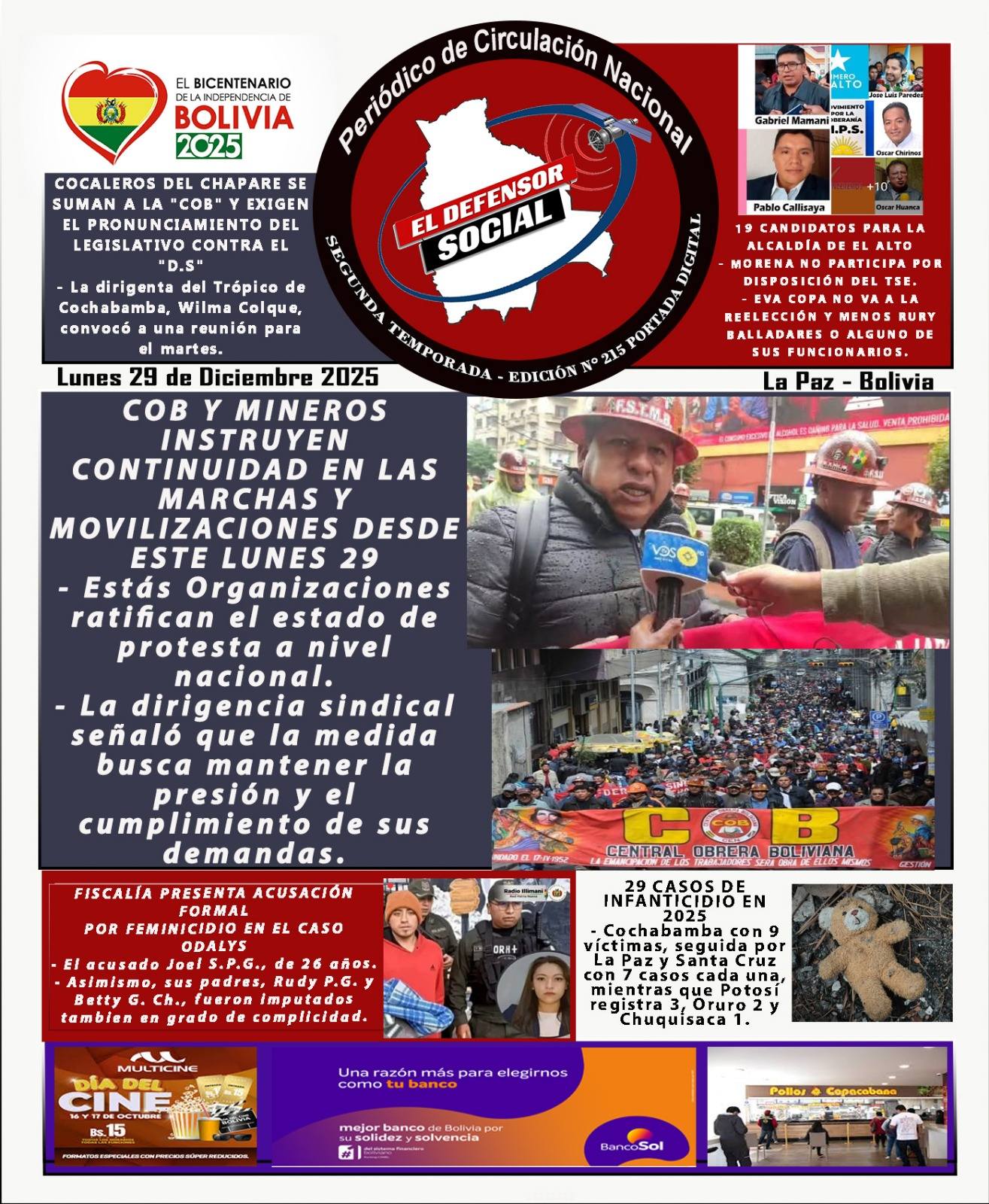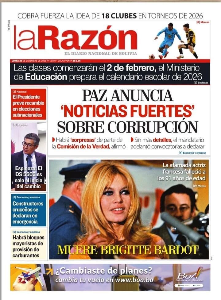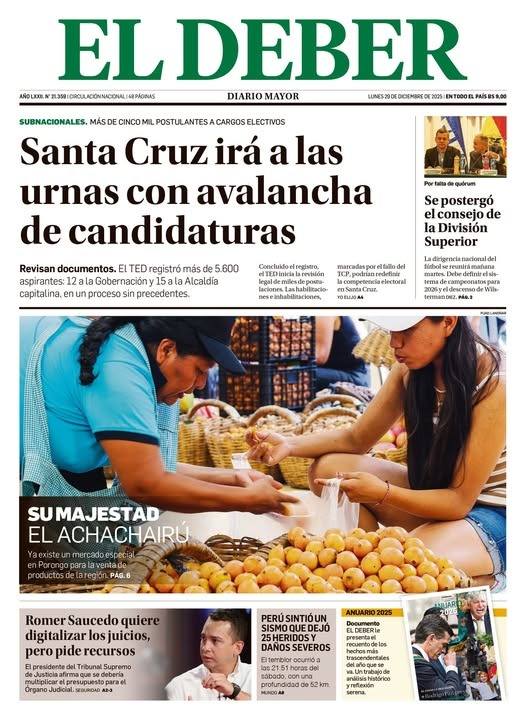 Fuente: El Deber, El Día, Zona Norte, La Palabra, La Razón, La Prensa, El Mundo,, La Voz, Contraparte, Andaluz, El Potosí, Correo del Sur, El País, El Periódico, El Diario, Amitel Pres, Caja Negra, Novavox.