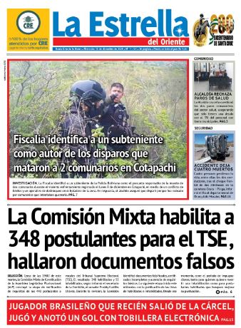 Fuente: El Deber, El Día, Zona Norte, La Palabra, La Razón, El Alteño, La Prensa, Ahora El Pueblo, La Estrella del Oriente, El Mundo, Los Tiempos, La Voz, Contraparte, Andaluz, El Potosí, Correo del Sur, El País, El Periódico, El Diario, Amitel Pres, Opinión, Caja Negra, Novavox.