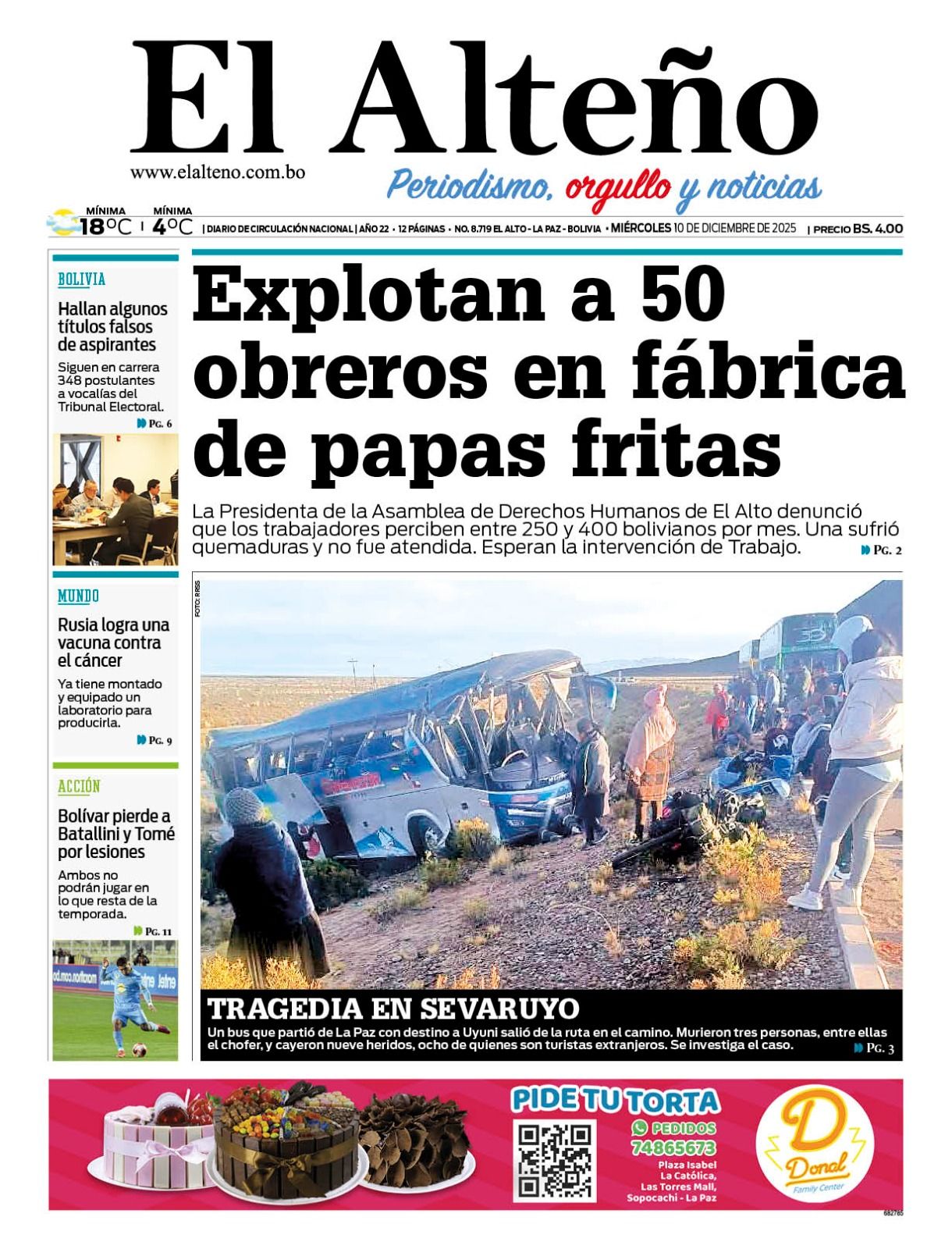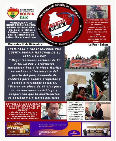 Portadas de los periódicos de Bolivia del miércoles 10 de diciembre del 2025