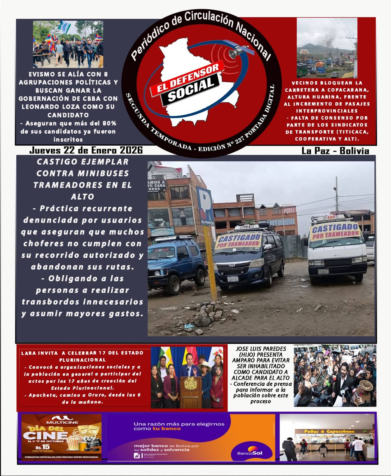 Fuente: El Deber, El Día, Zona Norte, La Palabra, La Razón, El Alteño, La Prensa, Ahora El Pueblo, La Estrella del Oriente, El Mundo, Los Tiempos, La Voz, Contraparte, Andaluz, El Potosí, Correo del Sur, El País, El Periódico,, Amitel Pres, Opinión, Caja Negra, Novavox.
