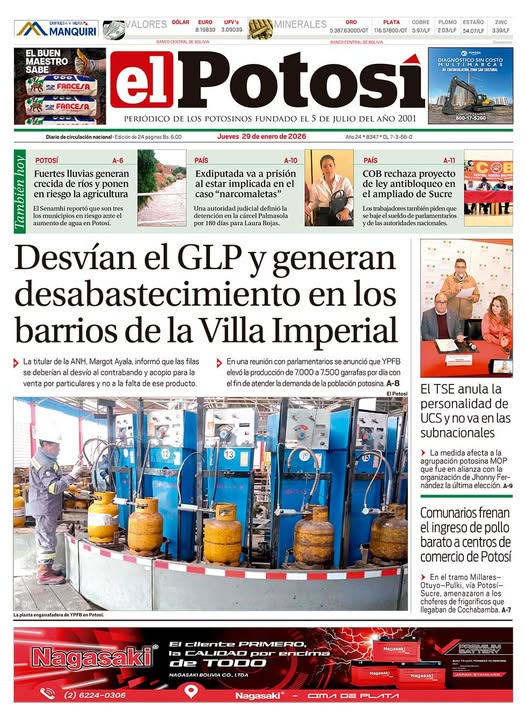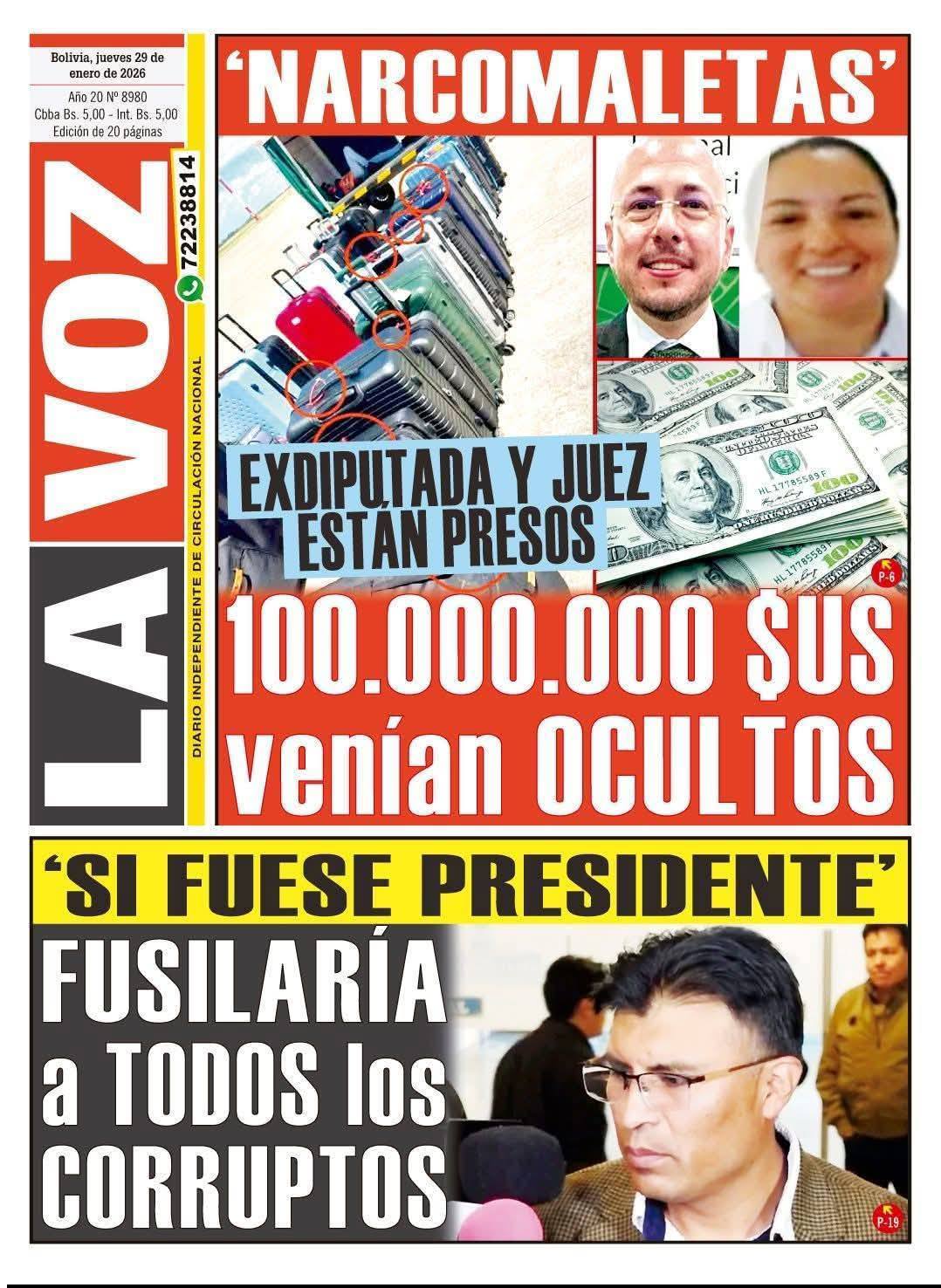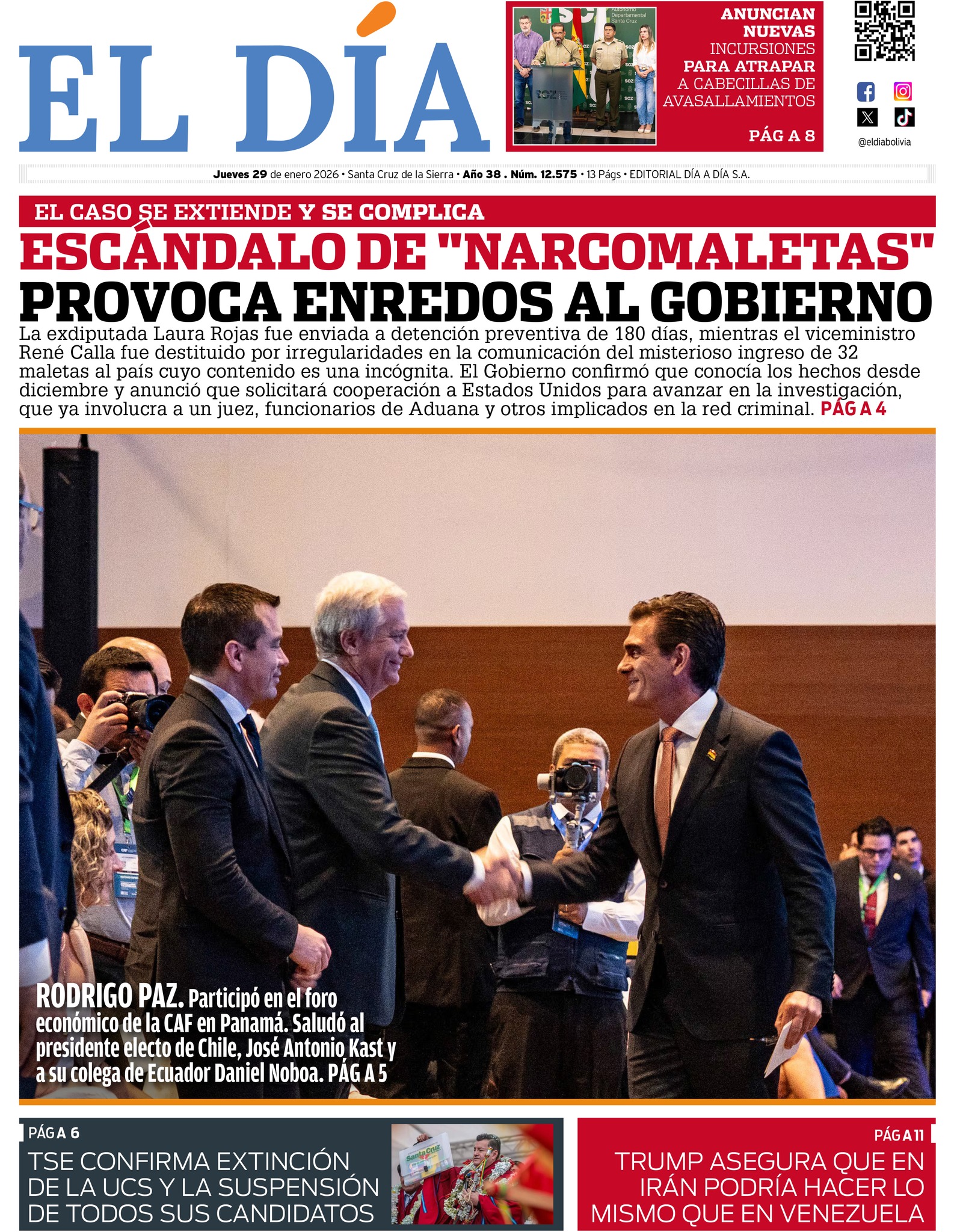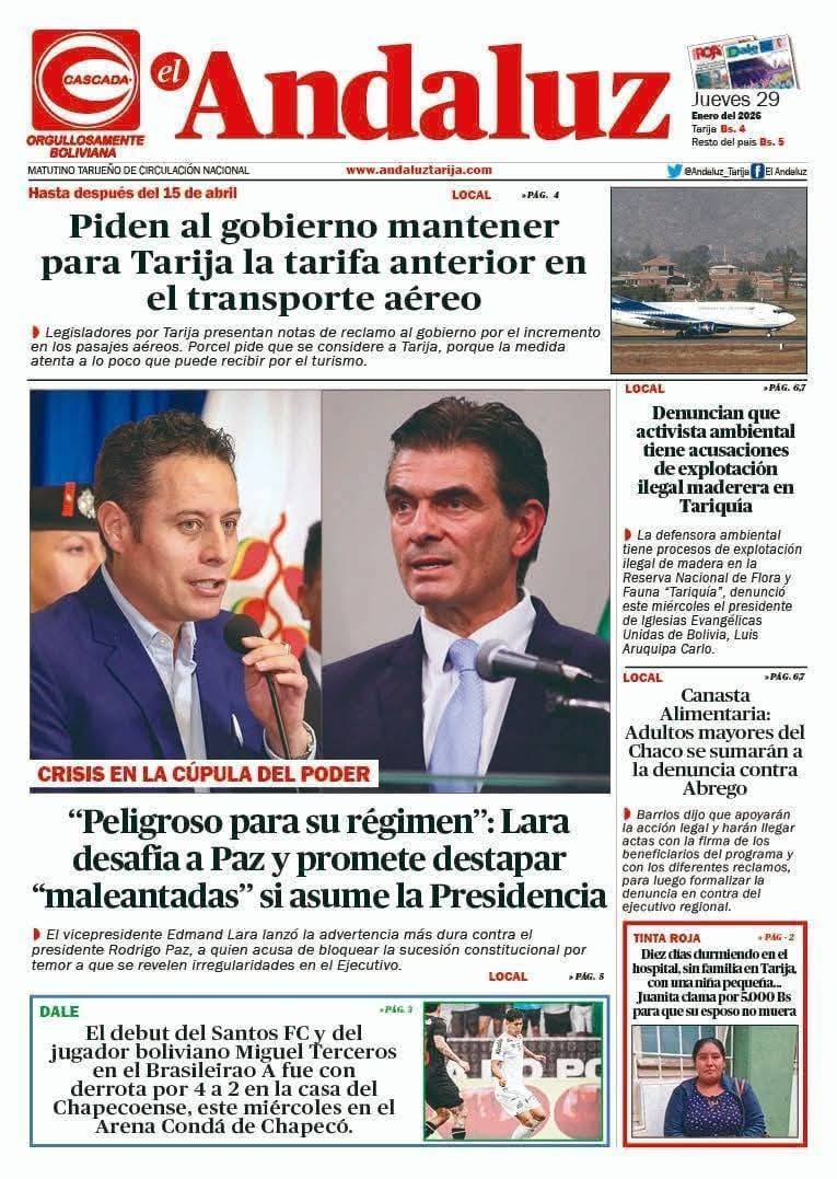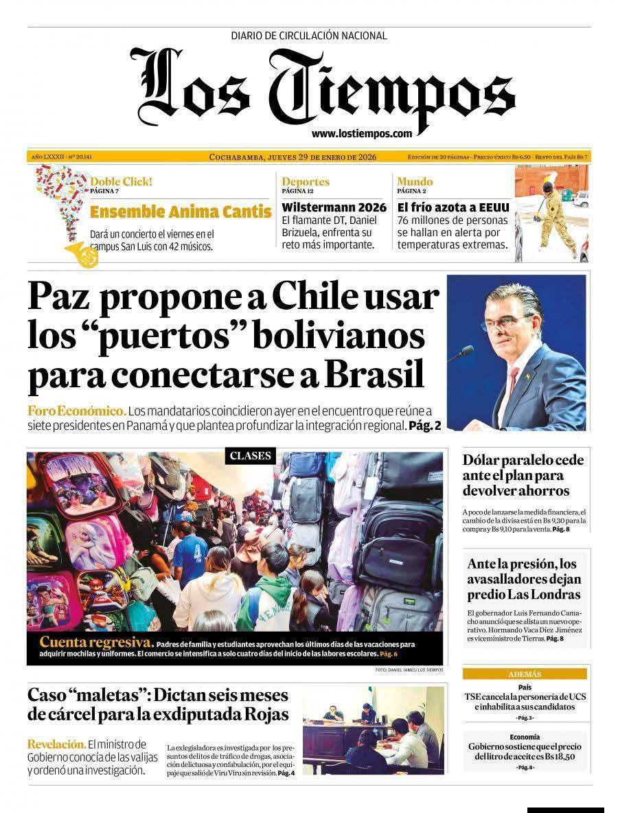 Portadas de los periódicos de Bolivia del jueves 29 enero del 2026