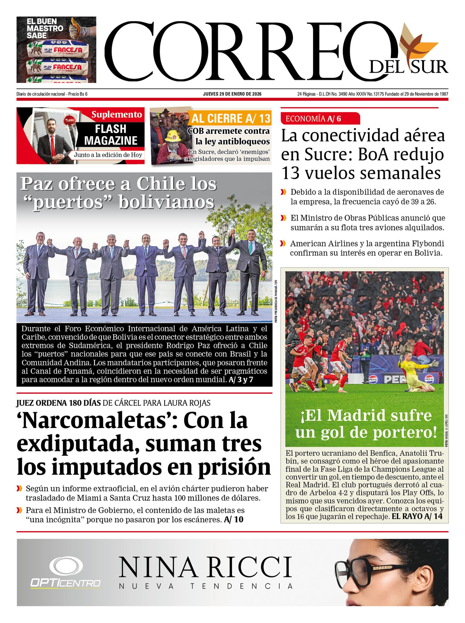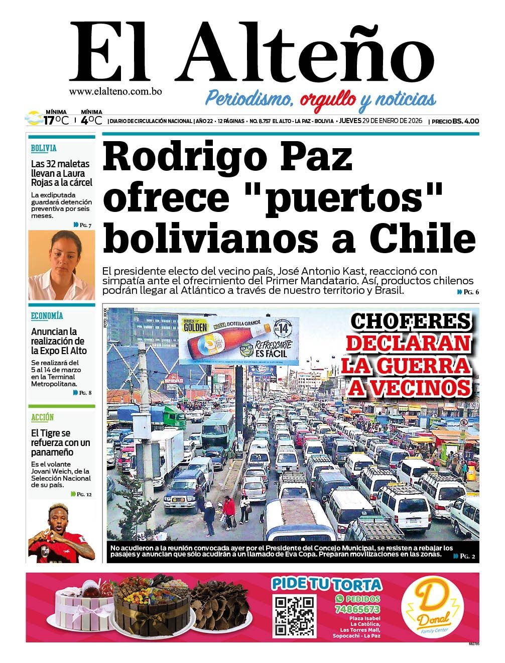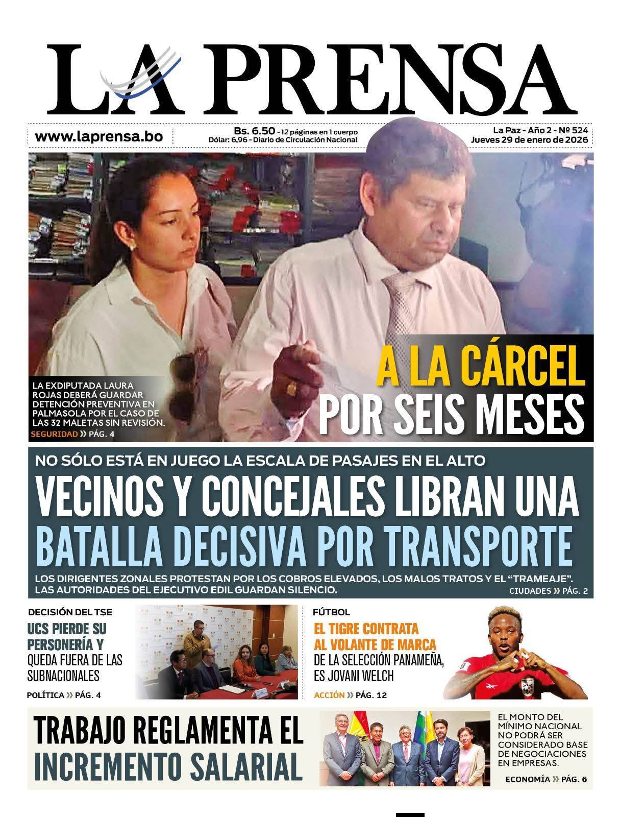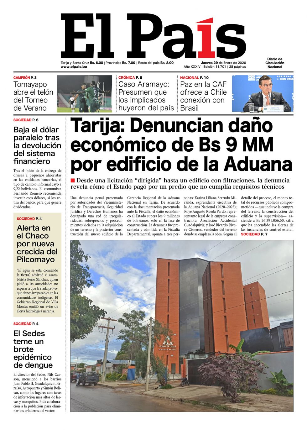Portadas de los periódicos de Bolivia del jueves 29 enero del 2026