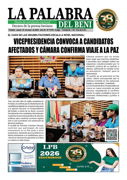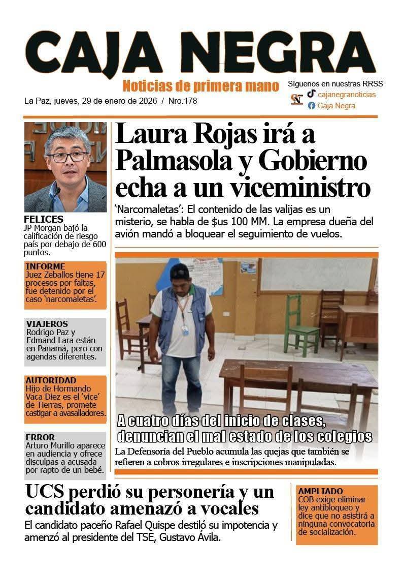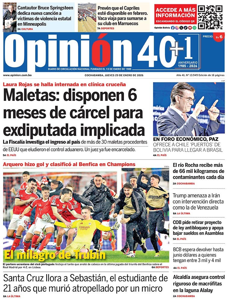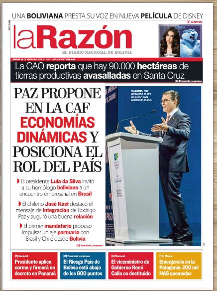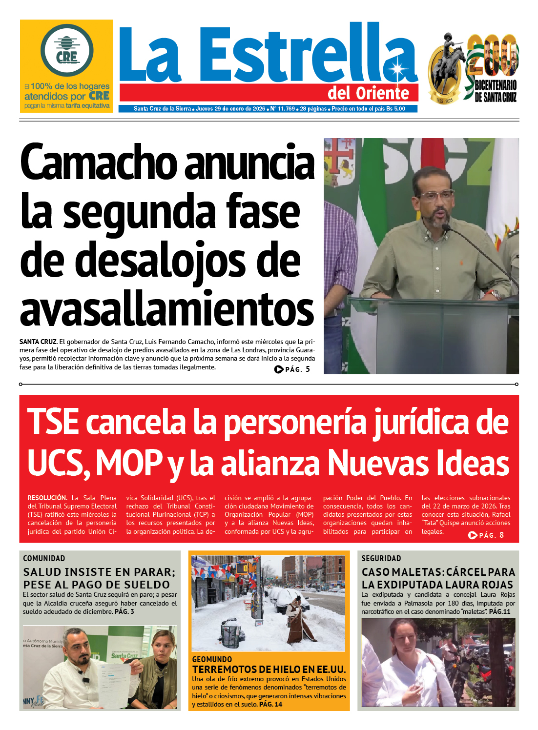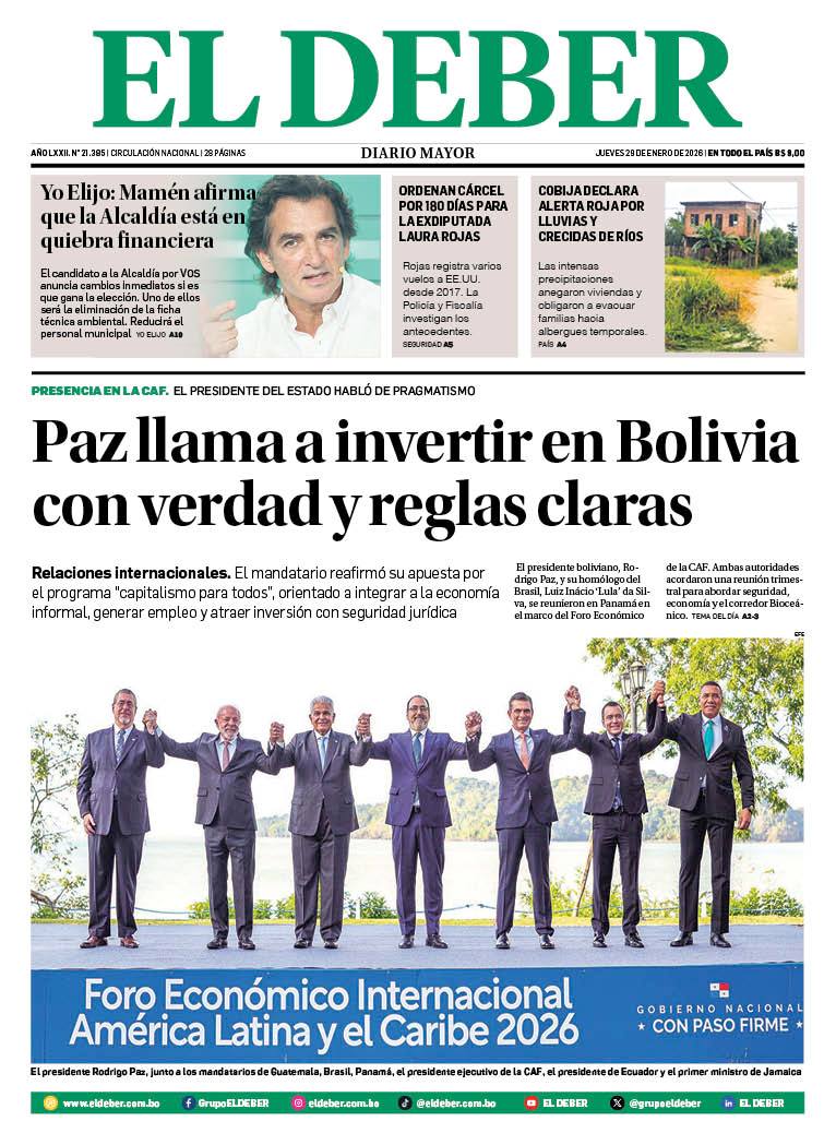 Portadas de los periódicos de Bolivia del jueves 29 enero del 2026