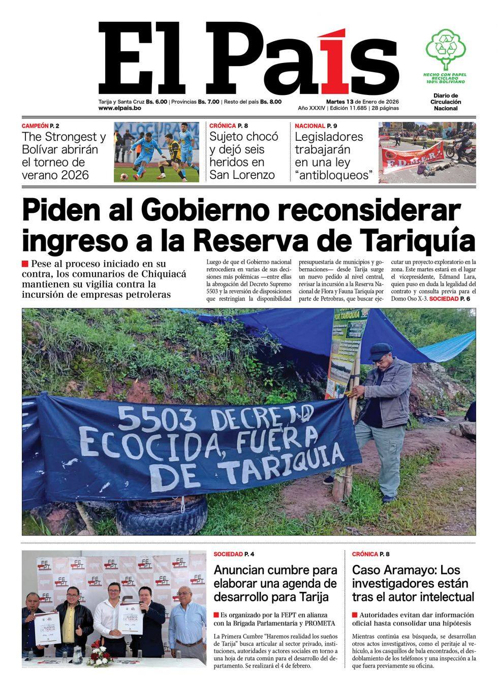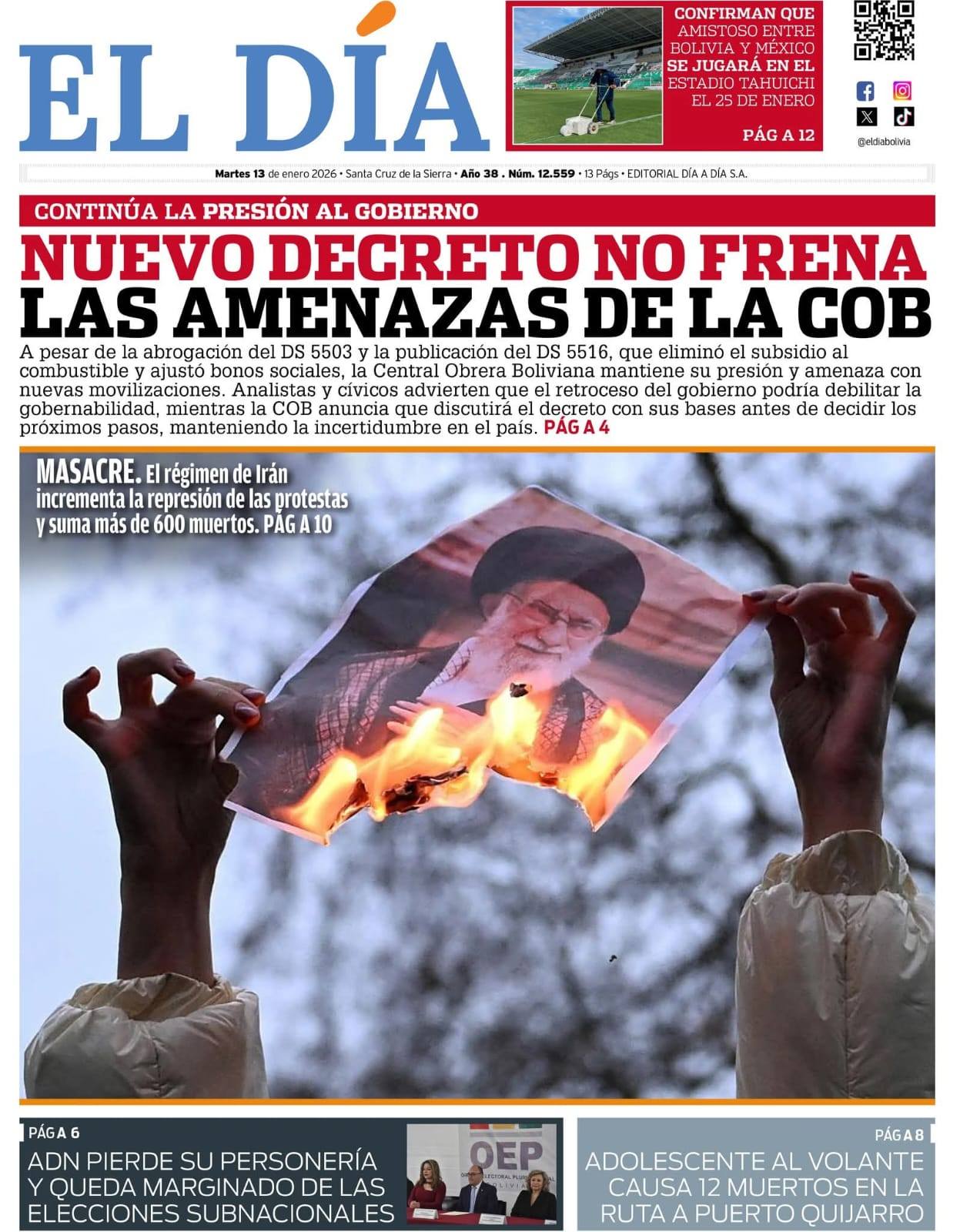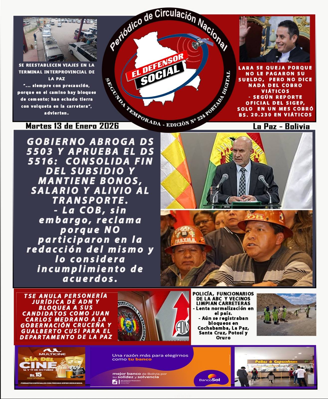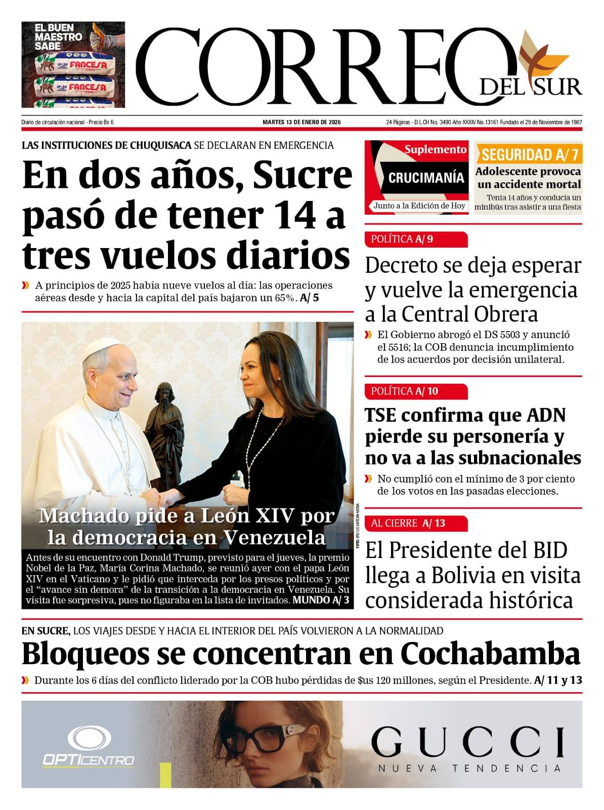 Fuente: El Deber, El Día, Zona Norte, La Palabra, La Razón, El Alteño, La Prensa, Ahora El Pueblo, La Estrella del Oriente, El Mundo, Los Tiempos, La Voz, Contraparte, Andaluz, El Potosí, Correo del Sur, El País,, Amitel Pres, Opinión, Caja Negra, Novavox.