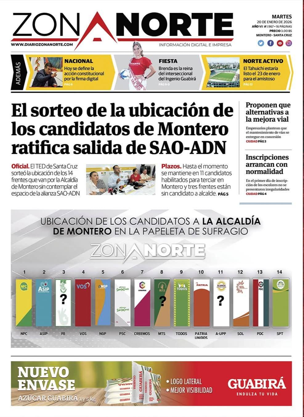 Fuente: El Deber, El Día, Zona Norte, La Palabra, La Razón, El Alteño, La Prensa, Ahora El Pueblo, La Estrella del Oriente, El Mundo, Los Tiempos, La Voz, Contraparte, Andaluz, Correo del Sur, El País, El Periódico, El Diario, Amitel Pres, Opinión, Caja Negra, Novavox.