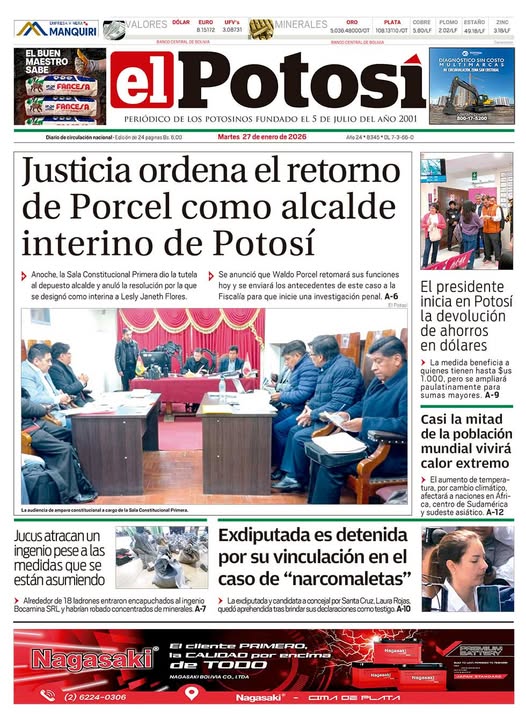 Fuente: El Deber, El Día, Zona Norte, La Palabra, La Razón, El Alteño, La Prensa, Ahora El Pueblo, La Estrella del Oriente, El Mundo, Los Tiempos, La Voz, Contraparte, Andaluz, El Potosí, Correo del Sur, El País, El Periódico,, Amitel Pres, Opinión, Caja Negra, Novavox.