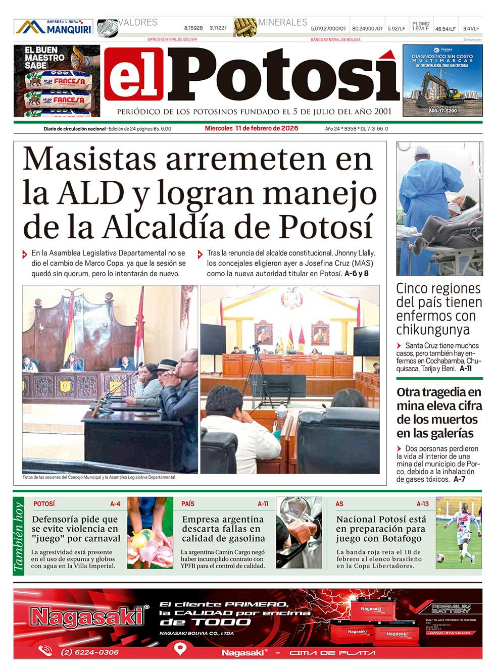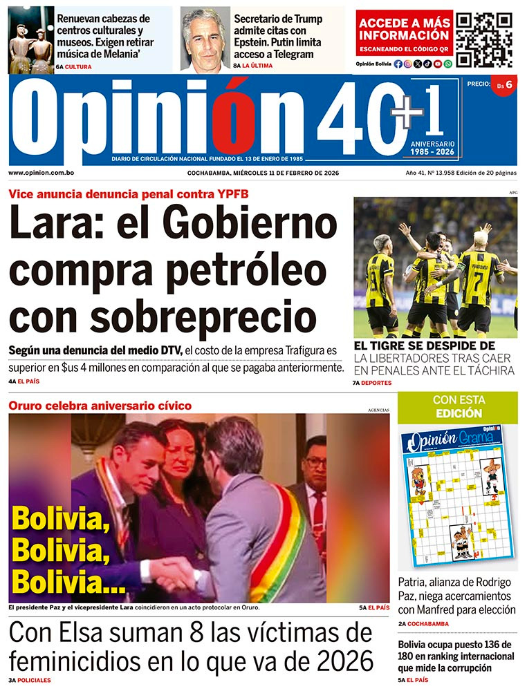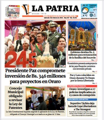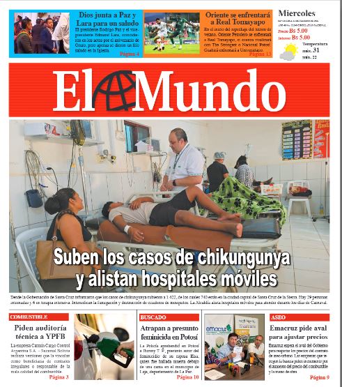 Fuente: El Deber, El Día, Zona Norte, La Palabra, La Razón, El Alteño, La Prensa, Ahora El Pueblo, La Estrella del Oriente, El Mundo, Los Tiempos, La Voz, Contraparte, Andaluz, El Potosí, Correo del Sur, El País, El Periódico, El Diario, Amitel Pres, Opinión, Caja Negra, Novavox, La Patria.