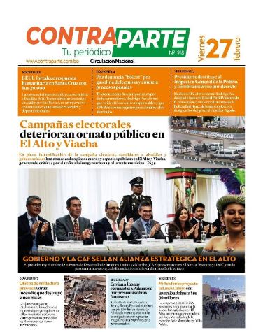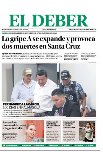 Fuente: El Deber, El Día, Zona Norte, La Palabra, La Razón, El Alteño, La Prensa, La Estrella del Oriente, El Mundo, Los Tiempos, La Voz, Contraparte, Andaluz, El Potosí, Correo del Sur, El País, El Periódico, El Diario, Amitel Pres, Opinión, Caja Negra, Novavox, La Patria.