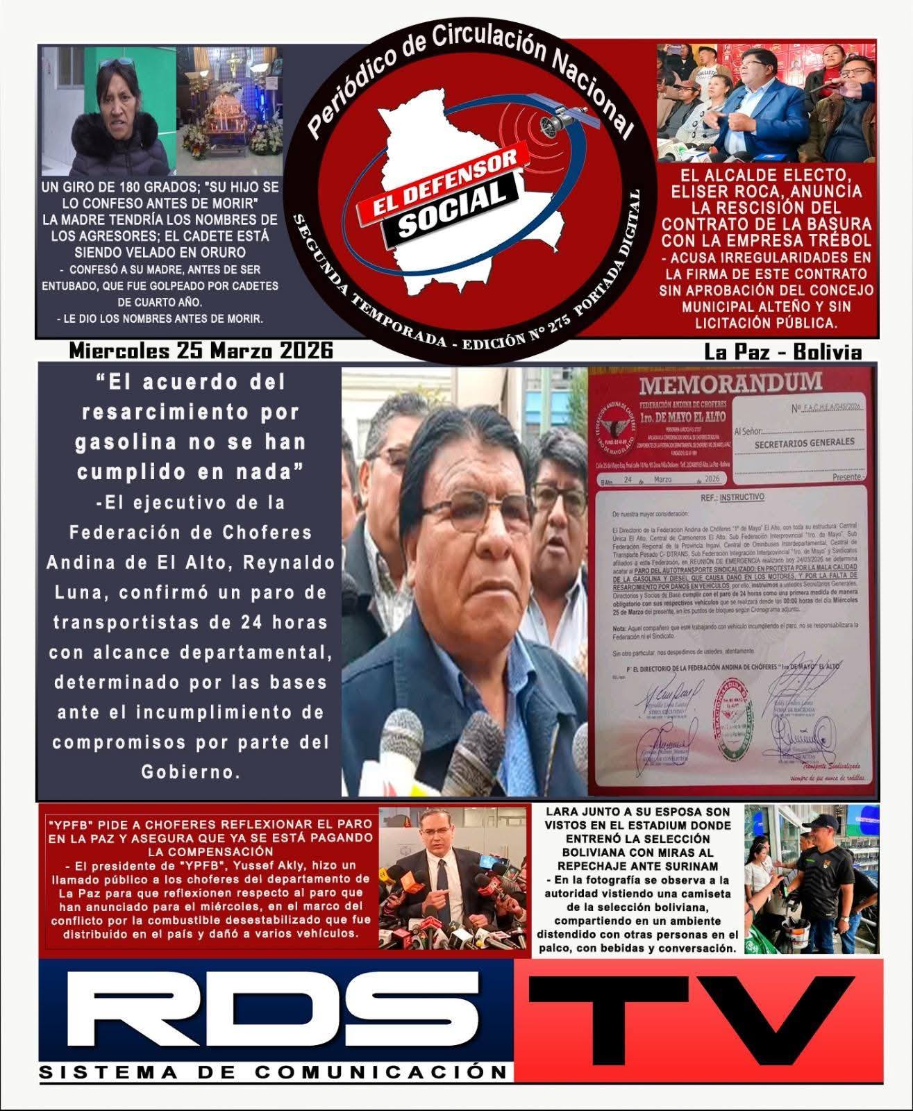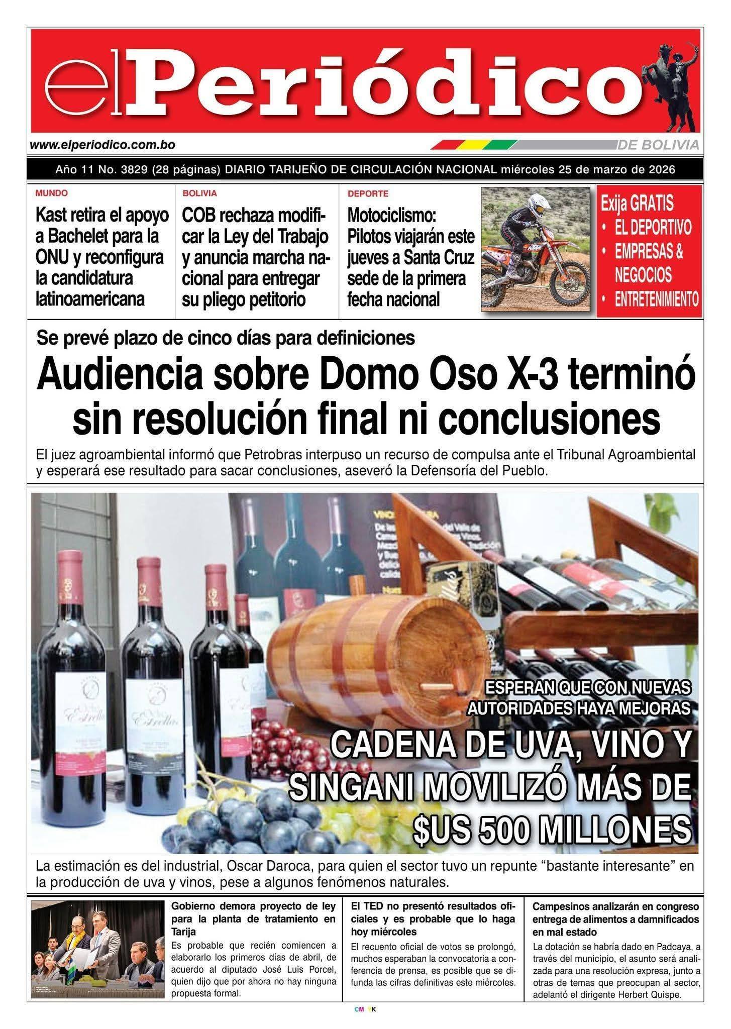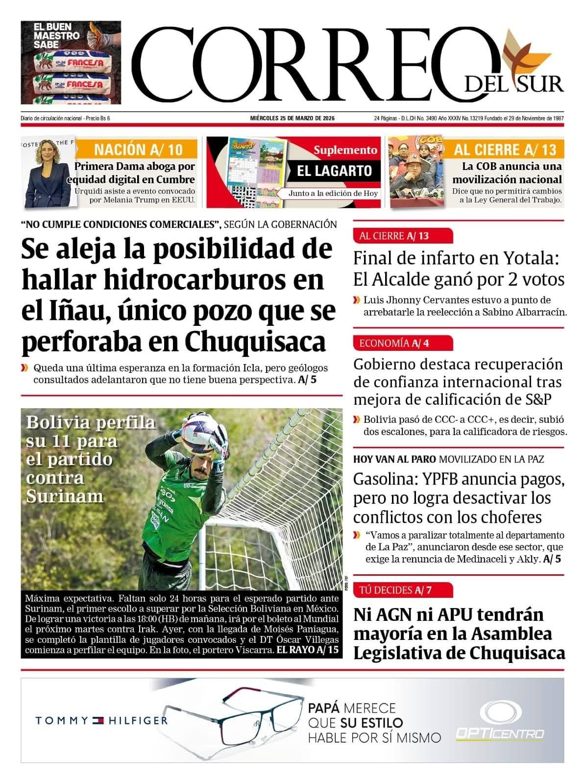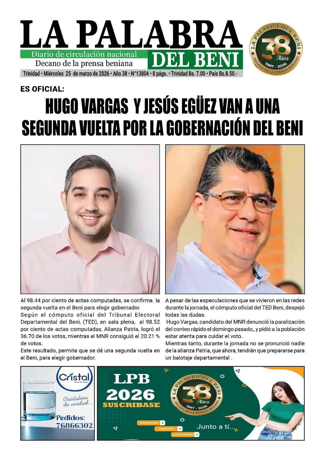 Fuente: El Deber, El Día, Zona Norte, La Palabra, La Razón, La Prensa, La Estrella del Oriente, El Mundo, Los Tiempos, La Voz, Contraparte, Andaluz, El Potosí, Correo del Sur, El País, El Periódico, El Diario, Amitel Pres, Opinión, Caja Negra, Novavox, La Patria.