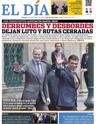 Fuente: El Deber, El Día, Zona Norte, La Palabra, La Razón, El Alteño, La Prensa, Ahora El Pueblo, La Estrella del Oriente, El Mundo, Los Tiempos, La Voz, Contraparte, Andaluz, El Potosí, Correo del Sur, El País, El Periódico, El Diario, Amitel Pres, Opinión, Caja Negra, Novavox, La Patria.