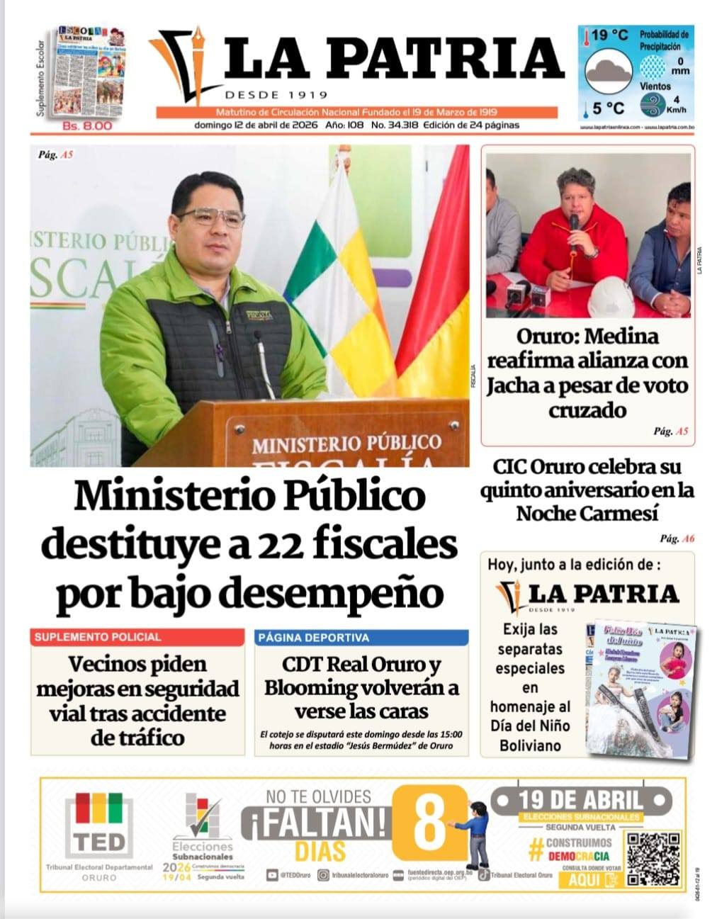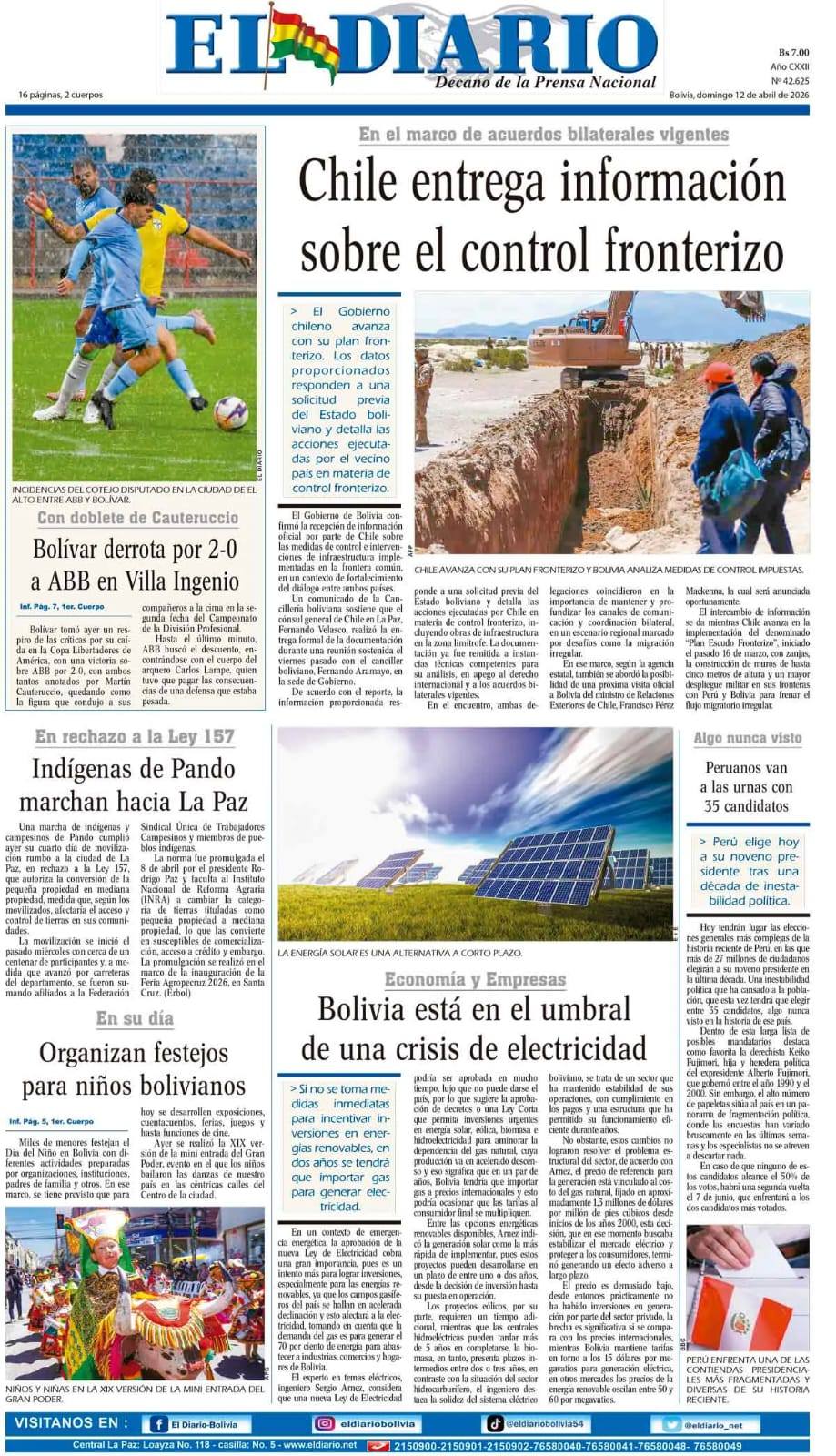 Fuente: El Deber, El Día, La Razón La Prensa, La Estrella del Oriente,, Los Tiempos, La Voz, Contraparte, Andaluz, El Potosí, Correo del Sur, El País, El Periódico, El Diario, Amitel Pres, Opinión, Caja Negra, Novavox, La Patria.