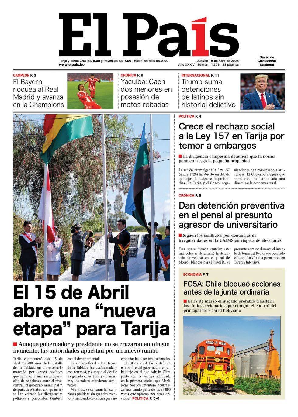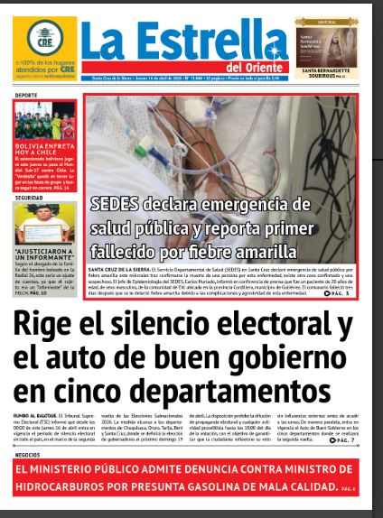 Fuente: El Deber, El Día, Zona Norte, La Palabra, La Razón, El Alteño, La Prensa, La Estrella del Oriente, El Mundo, Los Tiempos, La Voz, Contraparte, Andaluz, El Potosí, Correo del Sur, El País, El Periódico, Amitel Pres, Opinión, Caja Negra, Novavox, La Patria.