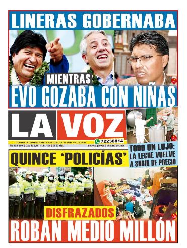 Fuente: El Deber, El Día, Zona Norte, La Razón, La Prensa, La Estrella del Oriente, El Mundo, Los Tiempos, La Voz, Contraparte, Andaluz, Correo del Sur, El País, El Periódico, El Diario, Amitel Pres, Opinión, Caja Negra, Novavox, La Patria.