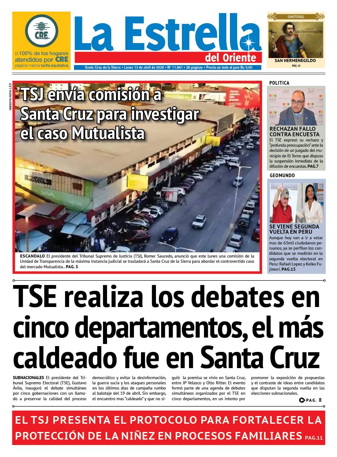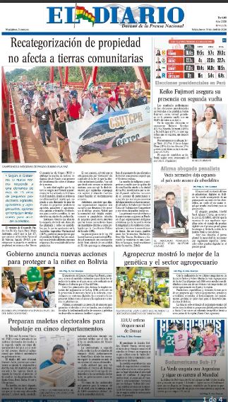Fuente: El Deber, El Día, Zona Norte, La Palabra, La Razón, La Prensa, El Diario, La Estrella del Oriente, El Mundo, La Voz, Contraparte, Andaluz, El Potosí, Correo del Sur, El País, El Periódico, El Diario, Amitel Pres, Opinión, Caja Negra, Novavox, La Patria.