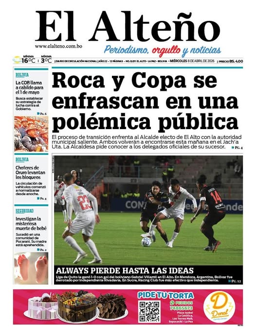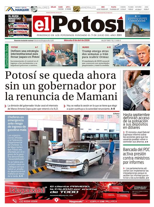 Fuente: El Deber, El Día, Zona Norte, La Palabra, La Razón, El Alteño, La Prensa, Ahora El Pueblo, La Estrella del Oriente, El Mundo, Los Tiempos, La Voz, Contraparte, Andaluz, El Potosí, Correo del Sur, El País, El Periódico, El Diario, Amitel Pres, Opinión, Caja Negra, Novavox, La Patria.